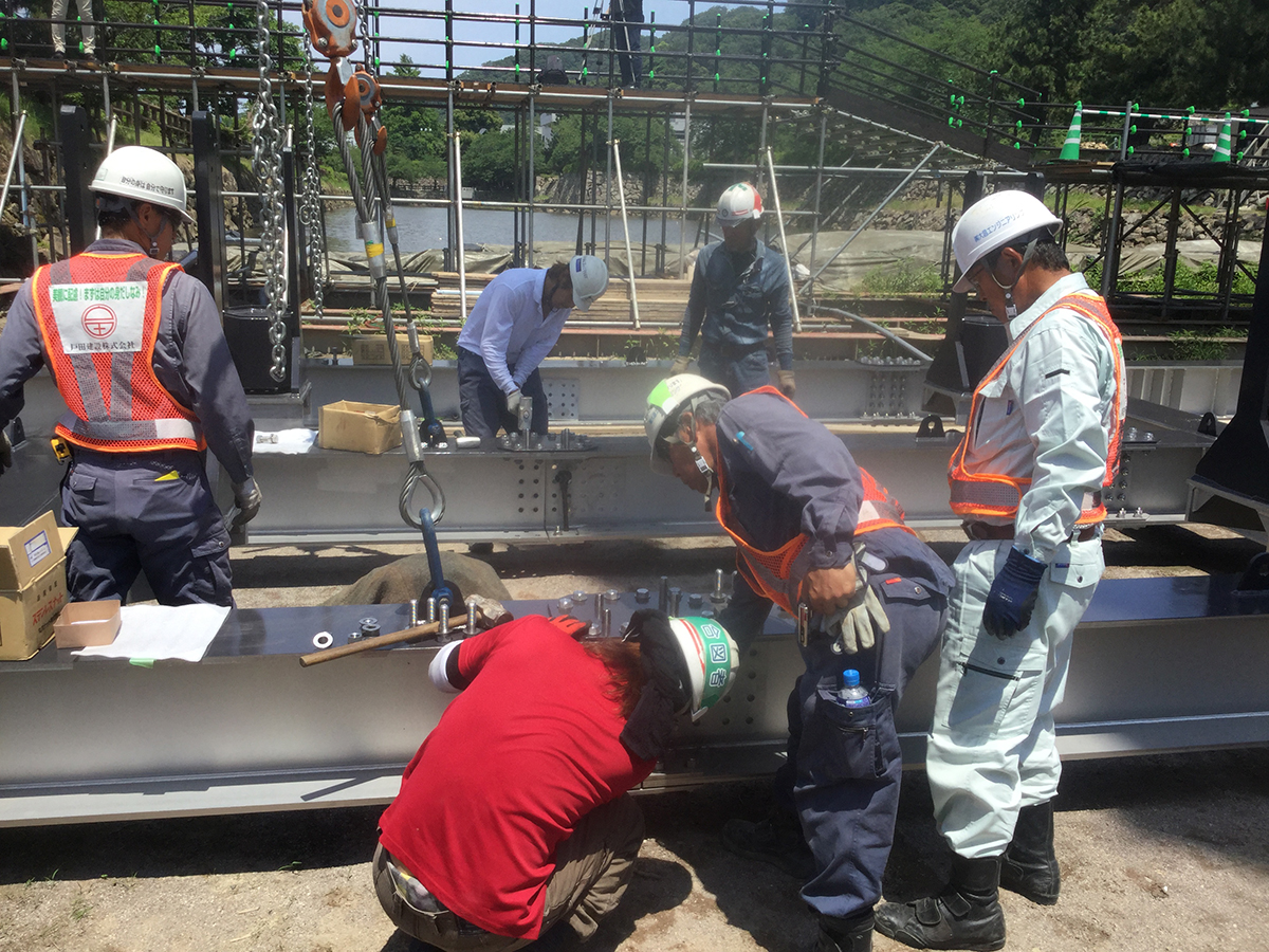 水中梁にねじれが生じて、なかなかボルトを入れることができなかった