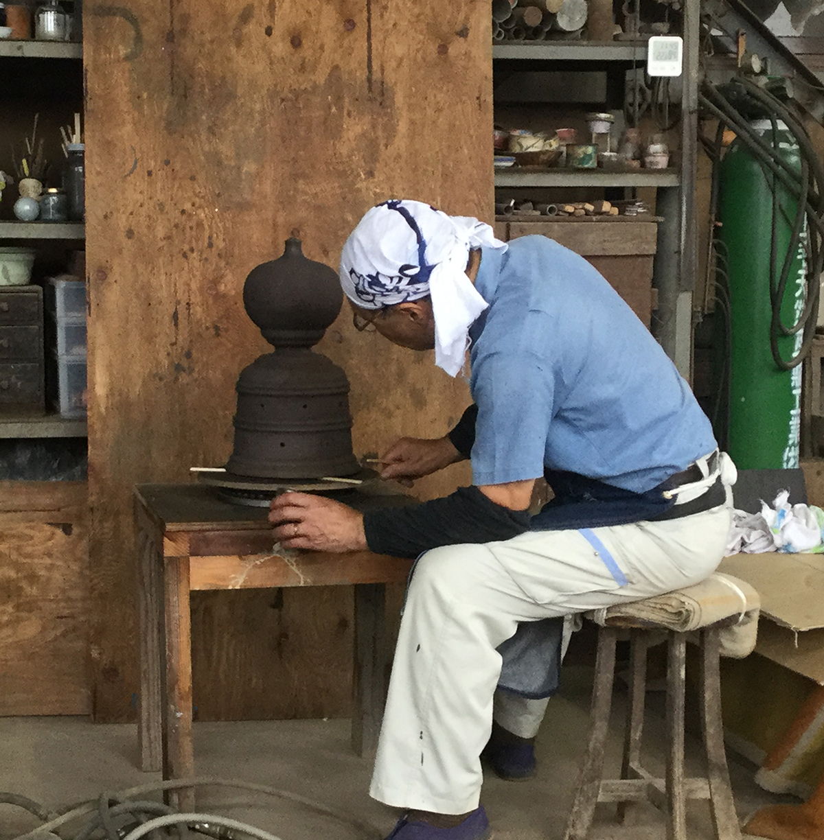 擬宝珠の復元作業/設置された擬宝珠(大柴功治撮影)