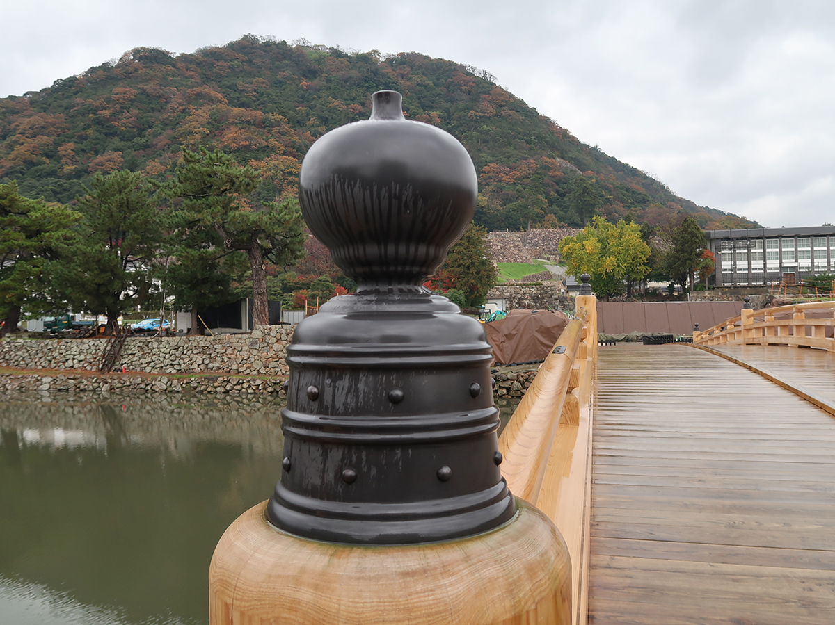 擬宝珠橋の名前の由来となった擬宝珠については、ひとつだけ現存していたものを3次元レーダーで測量し、蛍光X戦で成分分析をして復元をしたうえで、工事の最終段階に取り付けを行った。