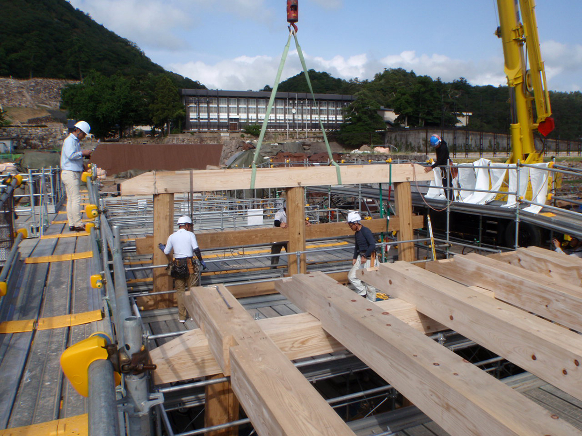 縦桁架設/台持ち継手(文化財保存計画協会提供)
