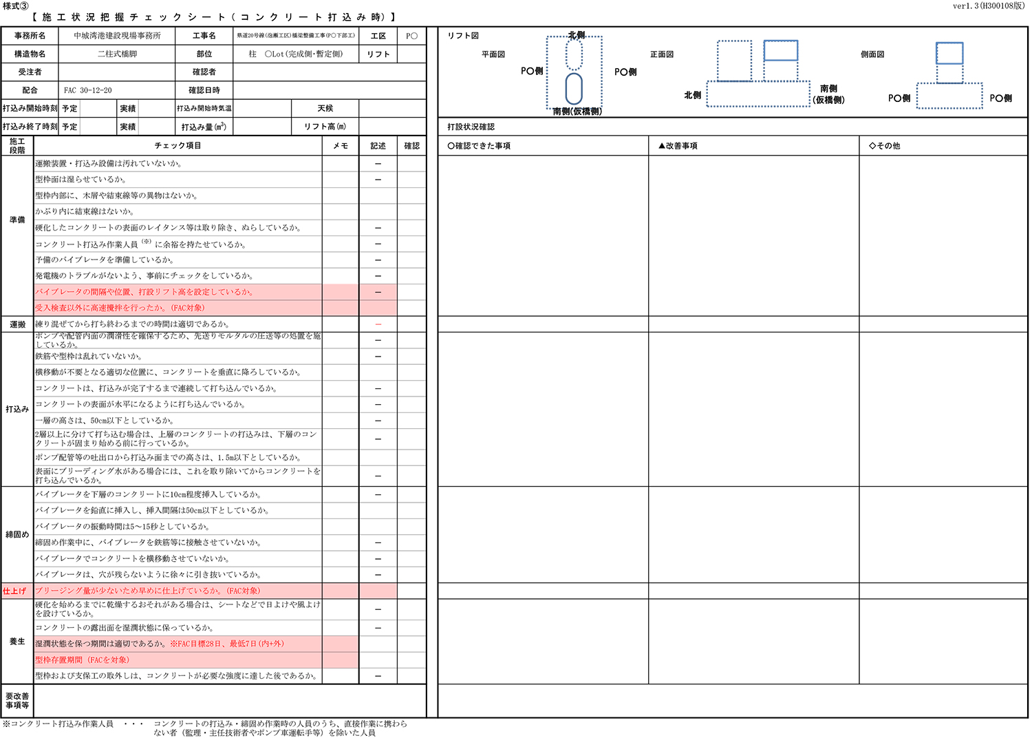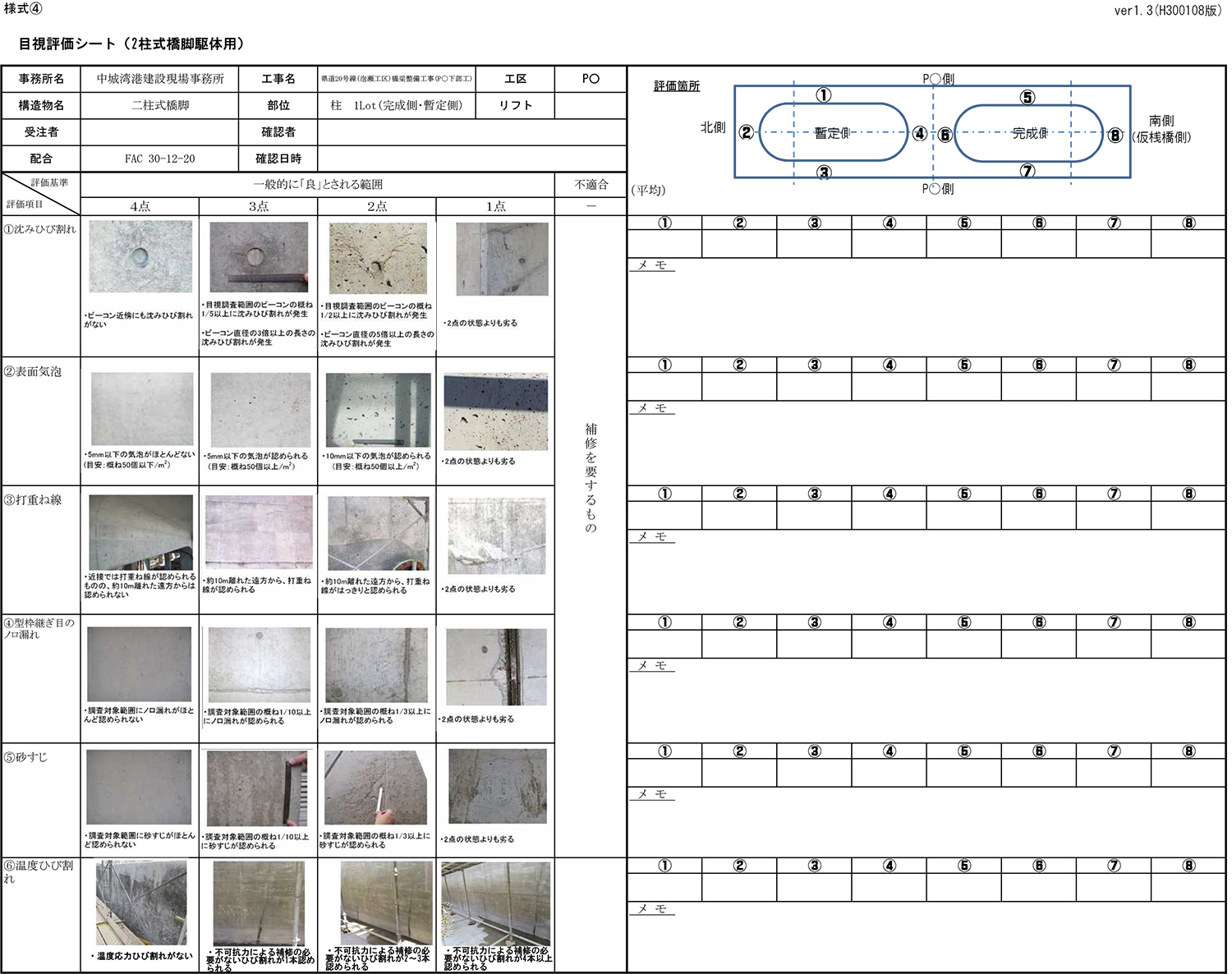 また、山口県や東北地方整備局などが実施している施工状況把握チェックシートおよび表層目視評価も試験的に実施しており、「下部工を受注している各社が品質を競争することにより施工品質が飛躍的に向上している」(同)ということだ。現在は、下部工19基中14基を今年度末までに完了させる予定だ。