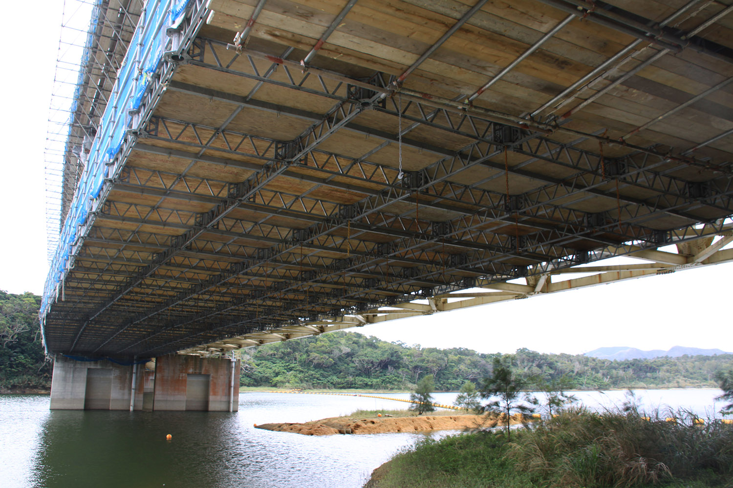 西日本高速道路が所管している沖縄高速道路の北部区間(石川IC~許田IC間)にある億首川橋(上り線)と明治山第一橋(下り線)の床版取替を含む大規模更新事業が行われている。億首川橋(上り線)は、A1~P3、P5~P11をH19~H20にSCBR工法で架け替えており、今回はP3~P5の鋼2径間連続非合成4主鈑桁部89.8m(幅員10.45m)とP11~A2の鋼3径間連続トラス非合成桁部288.4m(幅員10.45m)の床版を取り替えた。床版防水工はA1~A2全面で施工した。明治山第一橋(下り線)は橋長208.6m(幅員10.45m)の鋼3+3径間連続非合成4主鈑桁で、こちらは床版全面を取り替える。プレキャストPC床版への取替面積は億首川橋が4,044㎡。明治山第一橋が2,222㎡。同時に床版防水工は7,061㎡施工する。桁の塗り替えも行う予定で、面積は両橋で22,455㎡に及ぶ予定だ。同現場を取材した。(井手迫瑞樹)