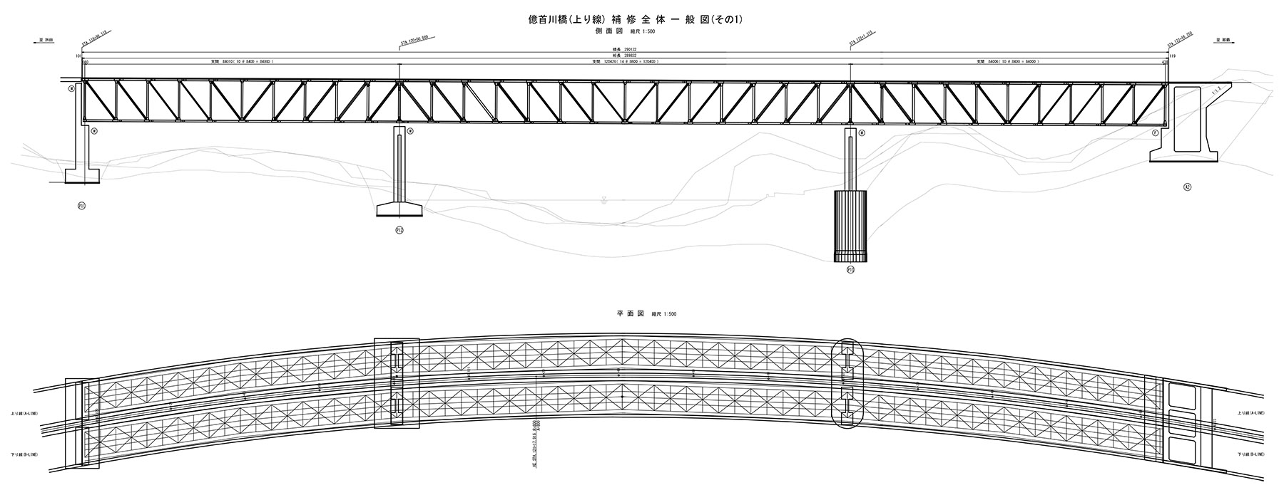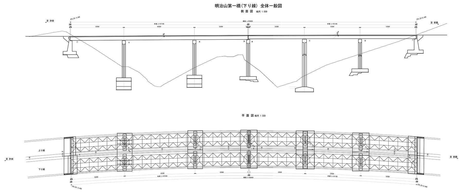 設計条件は億首川橋の鈑桁部で斜角90°、横断勾配4%、縦断勾配2.3%・同トラス桁部で斜角80°、横断勾配4%、縦断勾配2.3%。明治山第一橋は斜角85~94°、横断勾配2%、縦断勾配3.9%とほぼ直橋で勾配もゆるく比較的施工しやすい条件といえる。1日交通量は平均約25,000台で大型車交通量は約1700台と比較的少ない。こうした条件下で床版の撤去・取替は1月8日~4月12日の間、金武IC~許田IC間を対面通行規制して施工した。