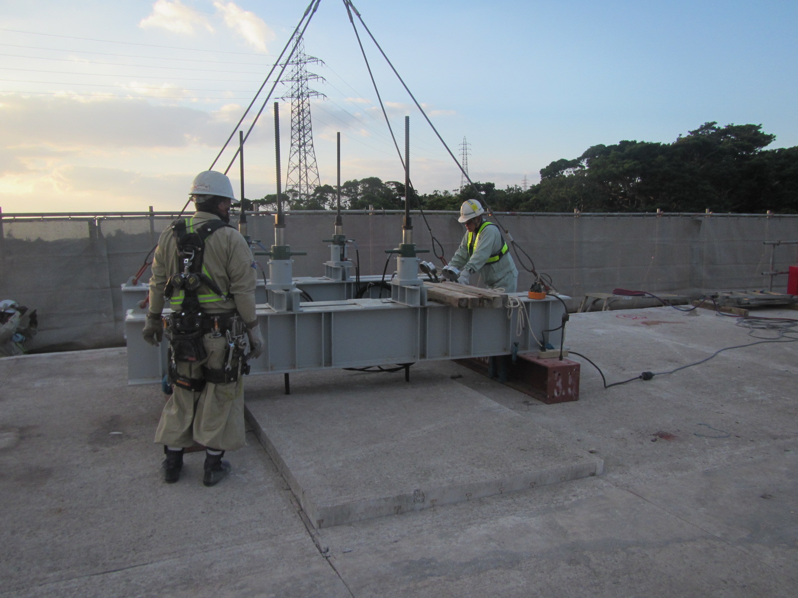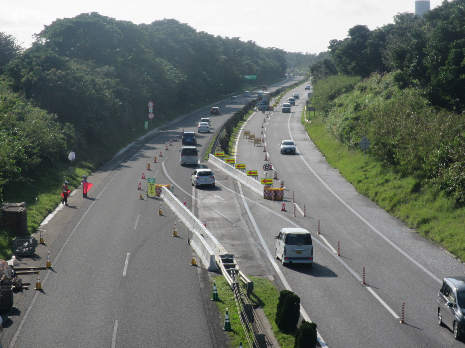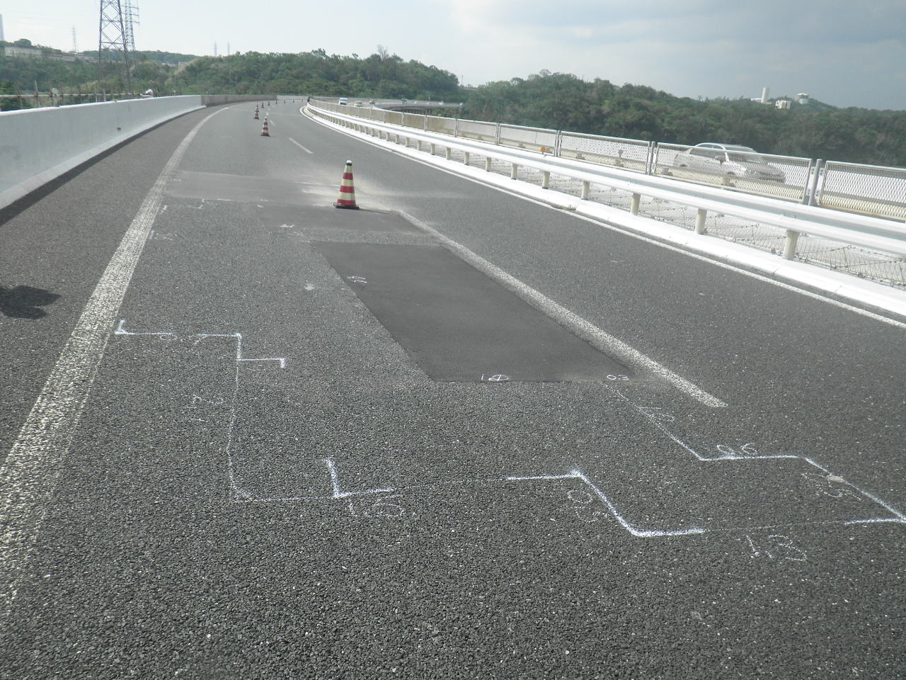 沖縄自動車道の北部区間は、沖縄海洋博(1975年7月20日~76年1月18日まで開催)のために施工期間約2年の突貫工事で施工された。コンクリート中の塩分総量規制前に建設されており、十分に除塩されていない(かつ空梅雨だった)海砂をコンクリートの細骨材として使用したことにより、既設のIBグレーチング床版において劣化や床版上面の浮きが見られる状況となっていた。今次床版も内在塩分量を調査した結果、1.7~2.3㎏/㎡に達していた。取替区間の床版はいずれもグレーチング床版であり、床版厚は210mmで増厚はしていない。