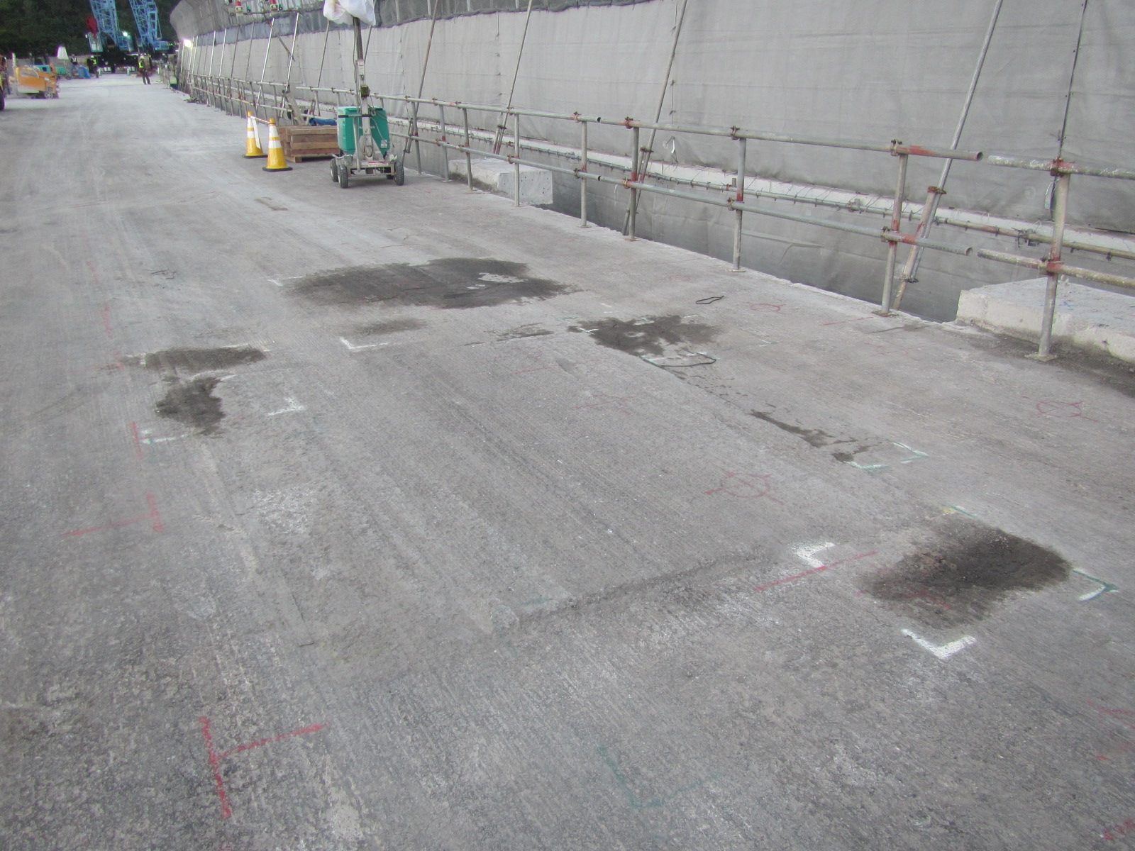 施工前の舗装上面/張り出し部の裏面(NEXCO西日本提供、以下注釈無きは同)