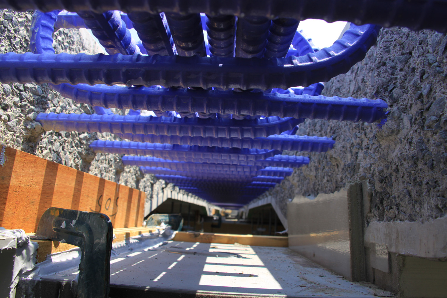 場所打ち床版部(左側未配筋、井手迫瑞樹撮影)/同配筋完了状況