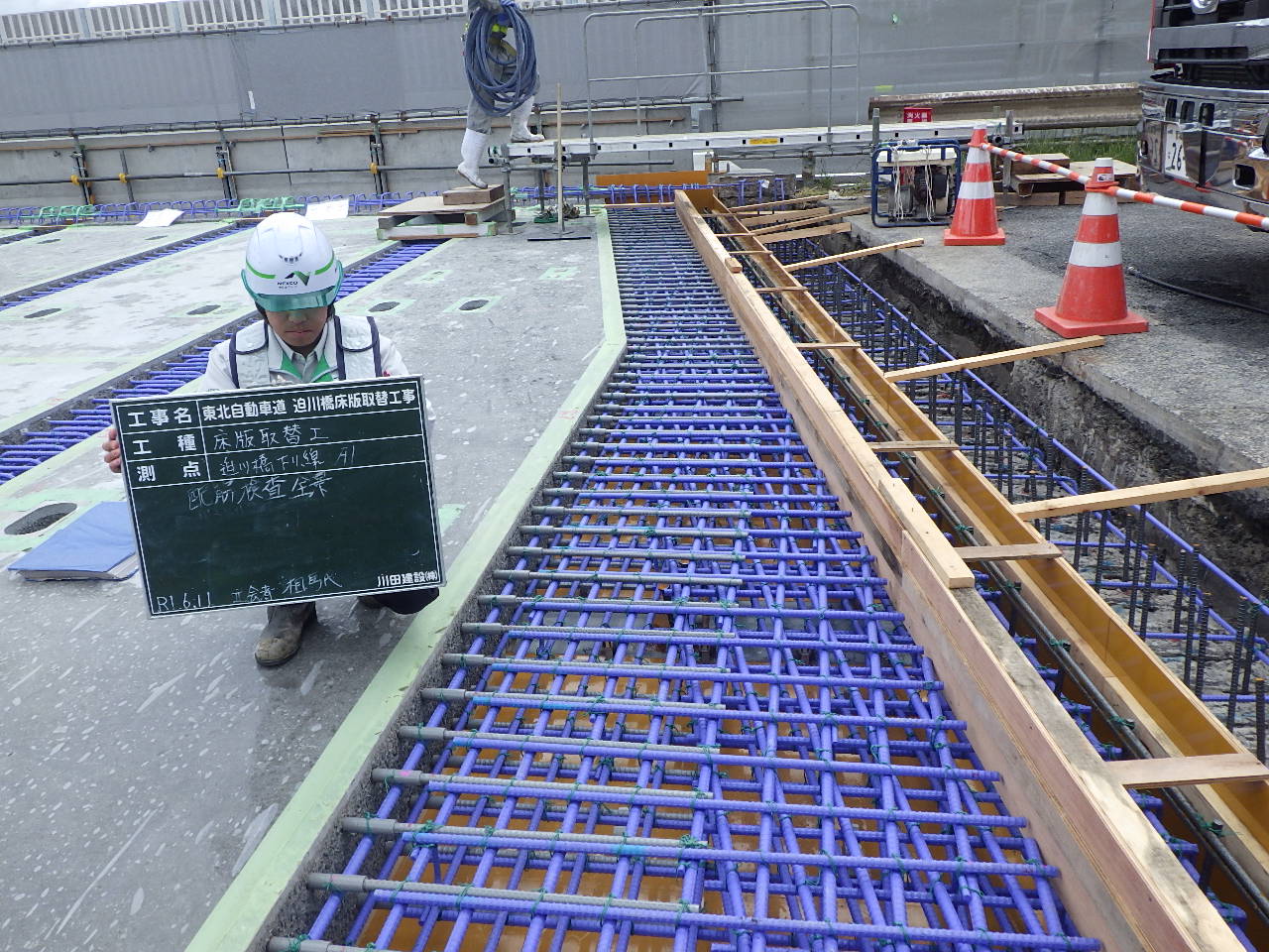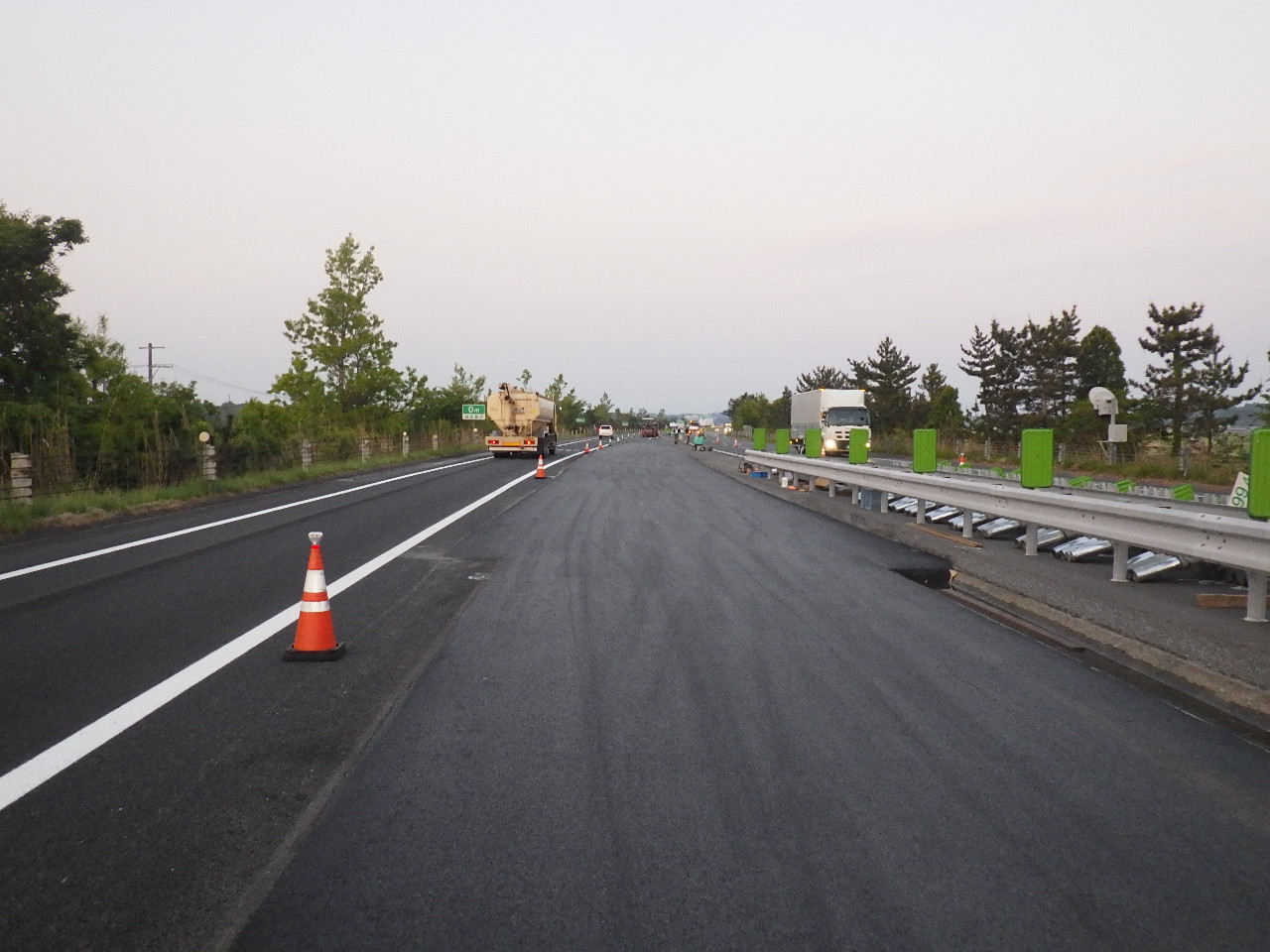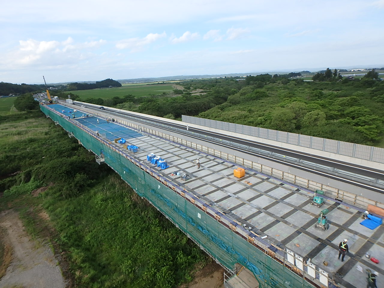 施工に際して、上り線は路肩も用いて車線規制するが、2018年に施工した三迫川橋の床版取替工事の際に(車線規制した土工部の)路肩舗装にポットホールが生じて、補修を行う必要が生じたため、事前に路肩の舗装改良範囲を広げ、その発生を防いでいる。