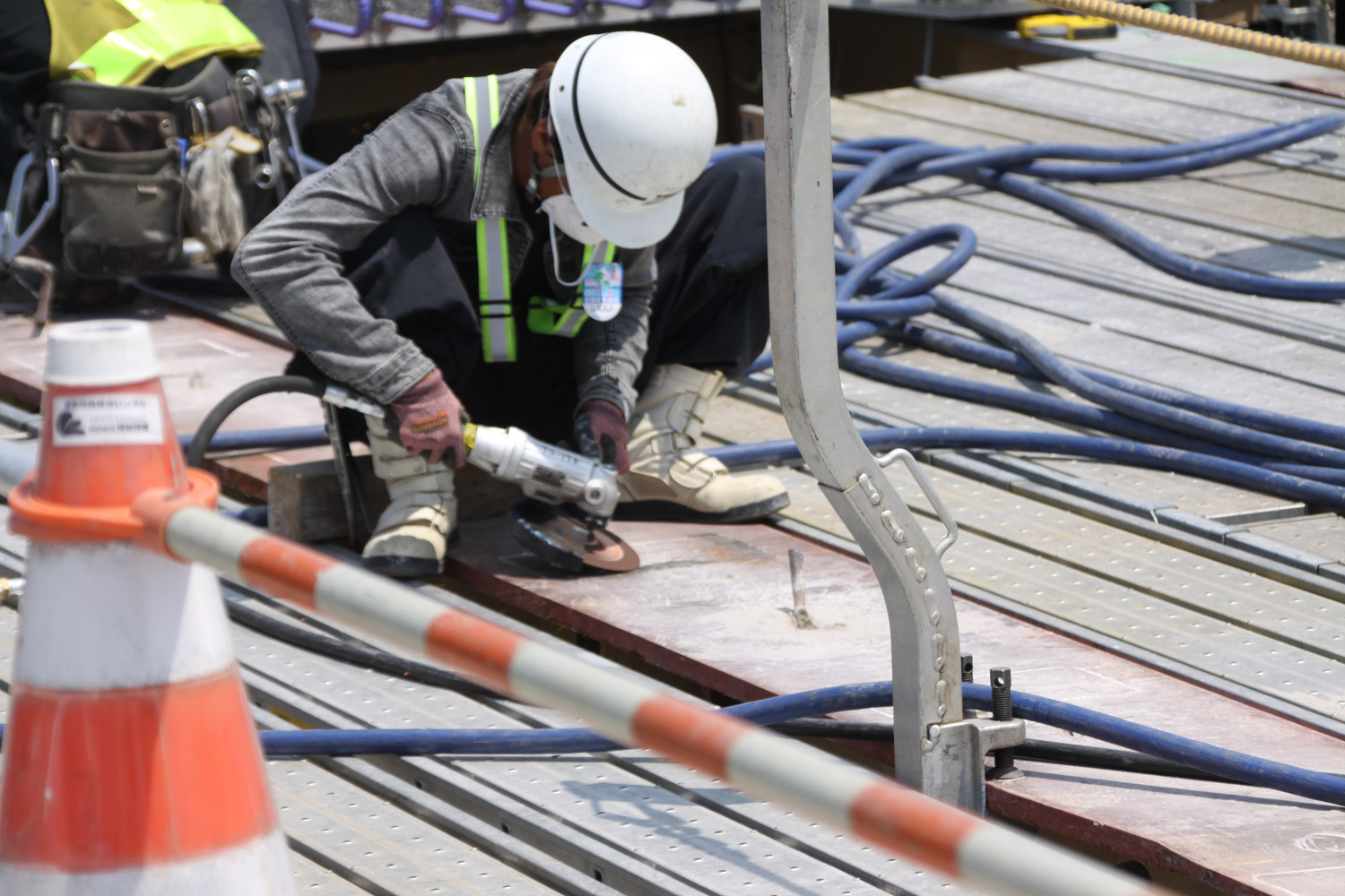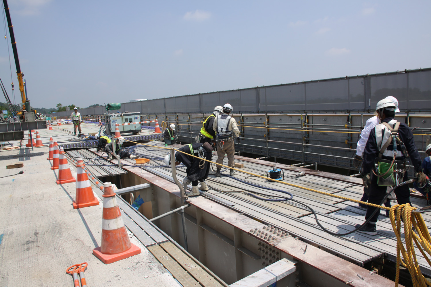 桁間にセフテージを配置しているため、安全に作業できていた(井手迫瑞樹撮影)