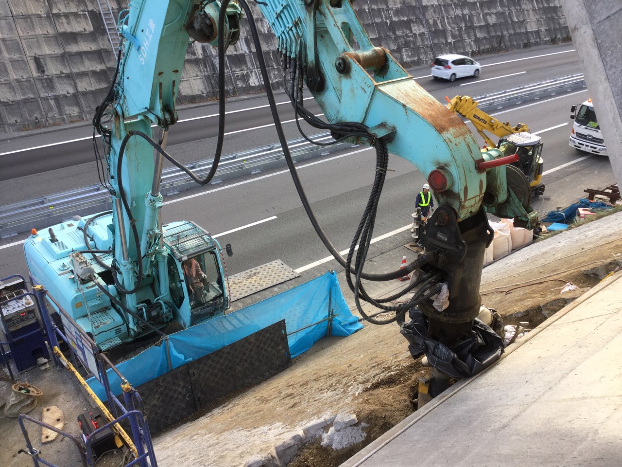 下り線の走行車線を規制して施工された(大柴功治撮影)