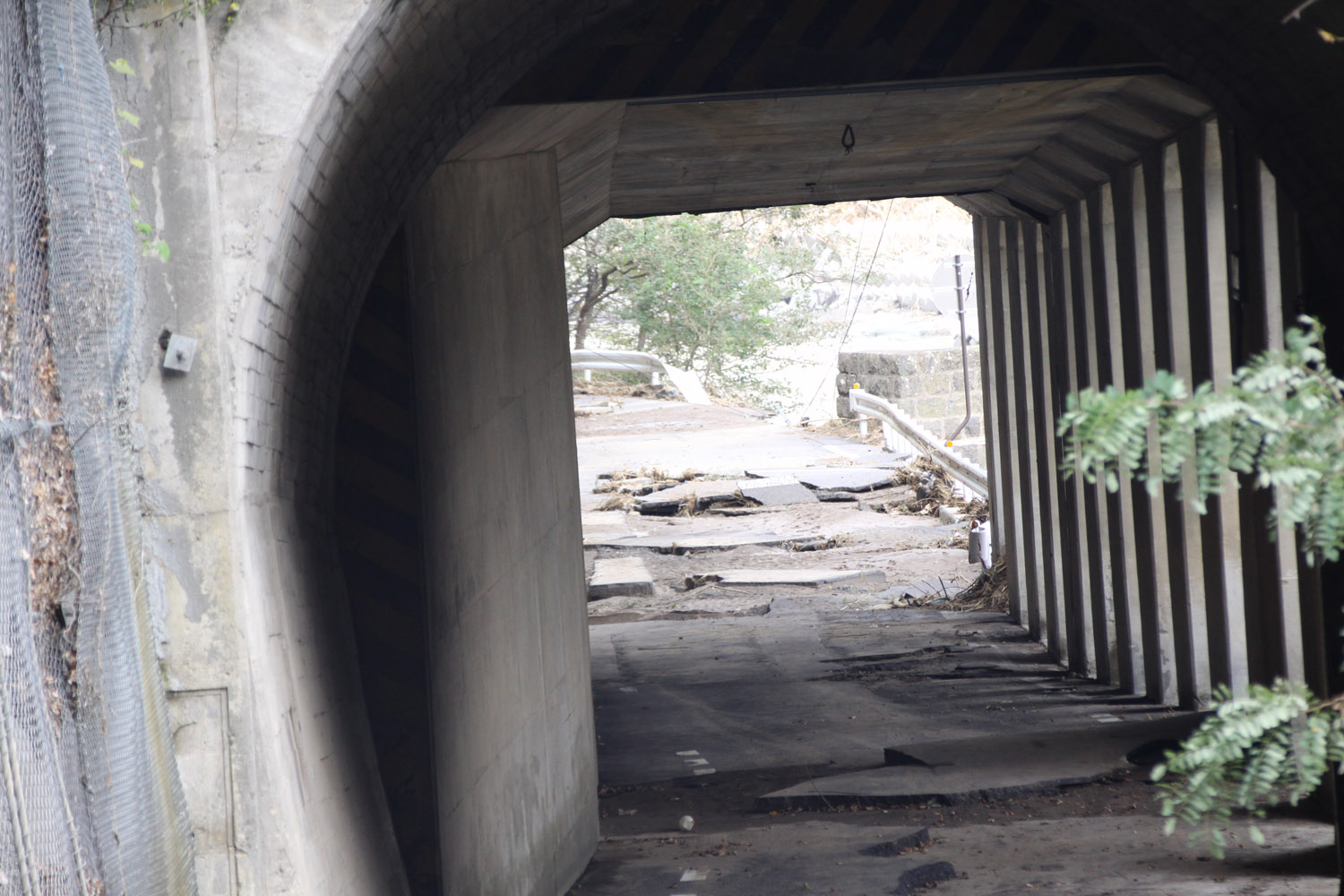 ロックシェッド出口近傍の損傷状況
