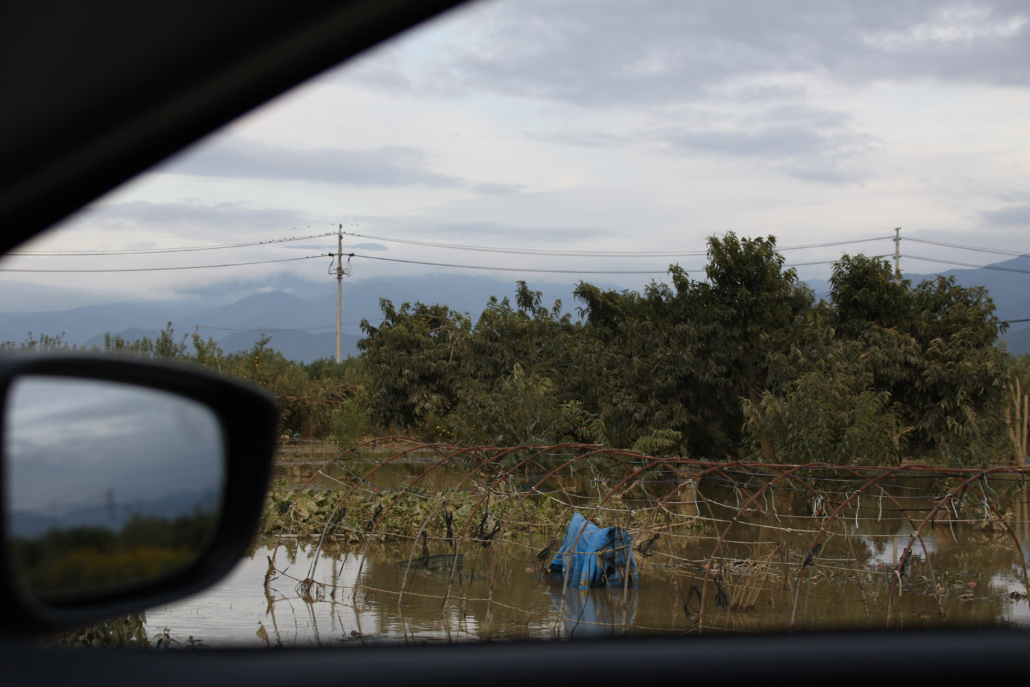 小布施地区のりんご畑の被害を車窓から撮る
