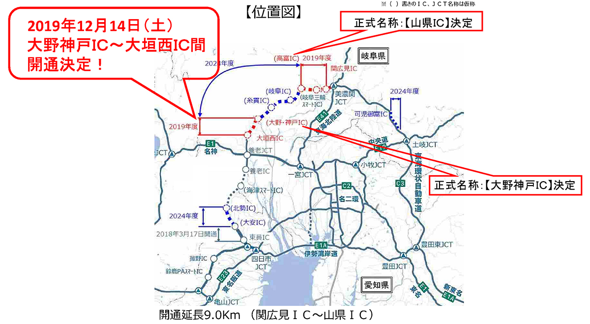NEXCO中日本 12月14日供用予定の東海環状道大野神戸IC~大垣西IC 工事現場を公開