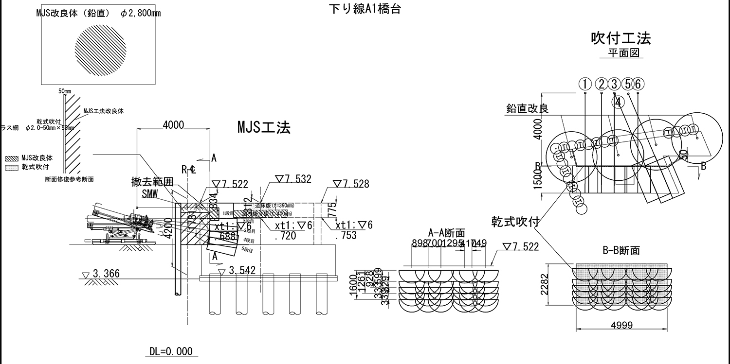 地盤改良工はメトロジェットシステム(MJS)工法を採用した。