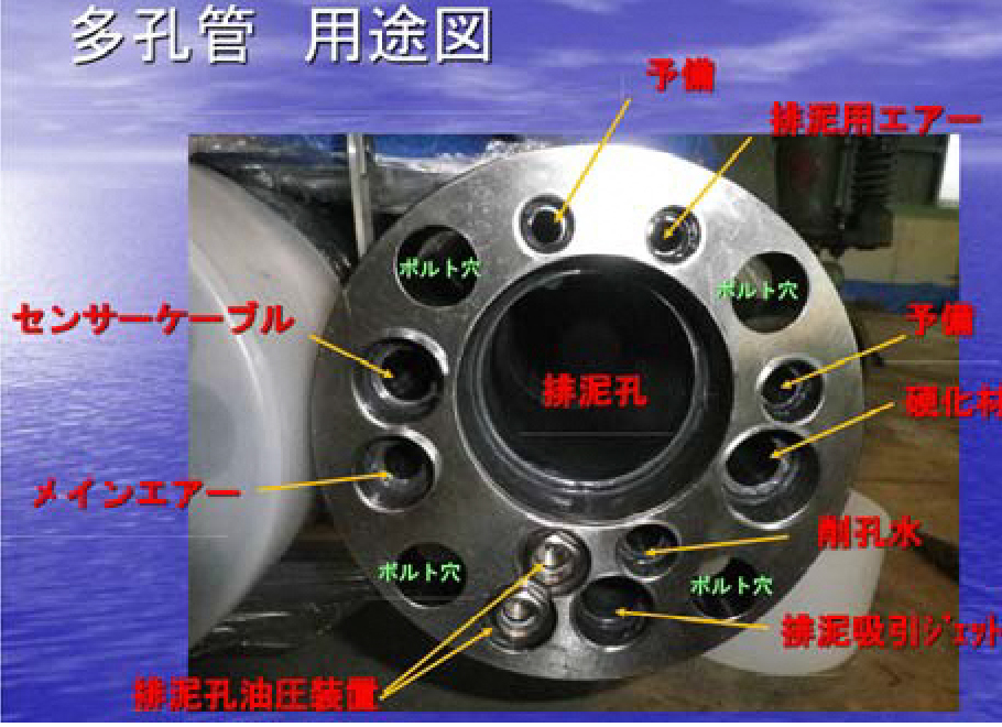 MJS工法の特徴は、排泥を強制的に専用管の中に吸引し、地表へ移送することにより地盤内圧力の管理に基づいて排出する排泥量を調整吸引することにより、噴射撹拌に伴う地盤の変状を抑制する工法だ。先端に地盤圧力を測るセンサーを付けてり、これにより噴射圧を調整して地盤の起伏をなくす。