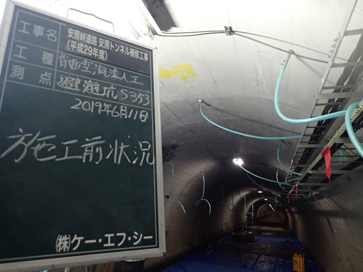 避難坑の背面空洞量は調査時の6倍。空洞には発泡ウレタンを注入