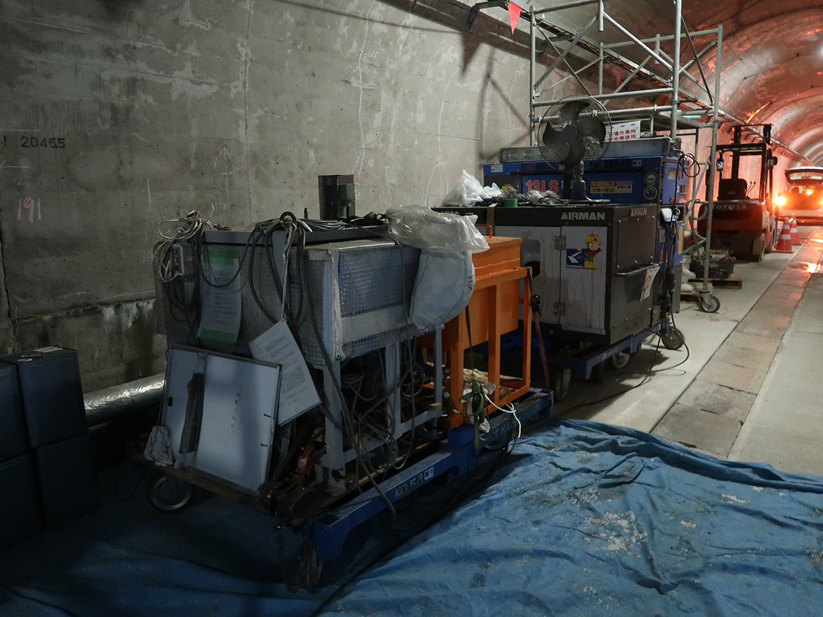 「RBSフォーム工法」は、ウレタン注入ポンプと発電機、原液用タンクという小規模な設備で坑内を移動でき、圧送の必要もないため、小断面で施工延長が長い本現場に適していたのだ。