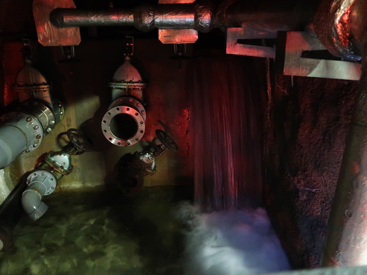 トンネル内の湧水は平湯地区の上水などに使用されている(大柴功治撮影)