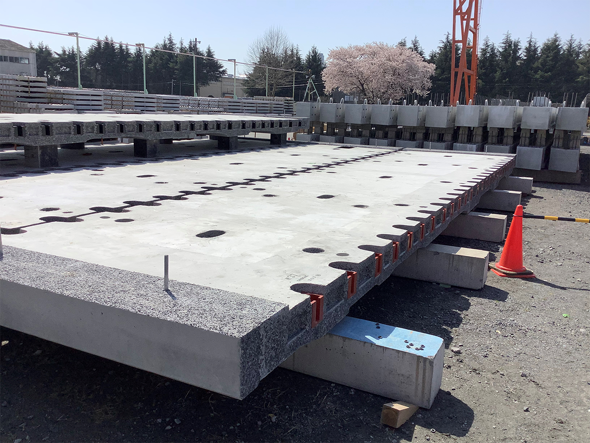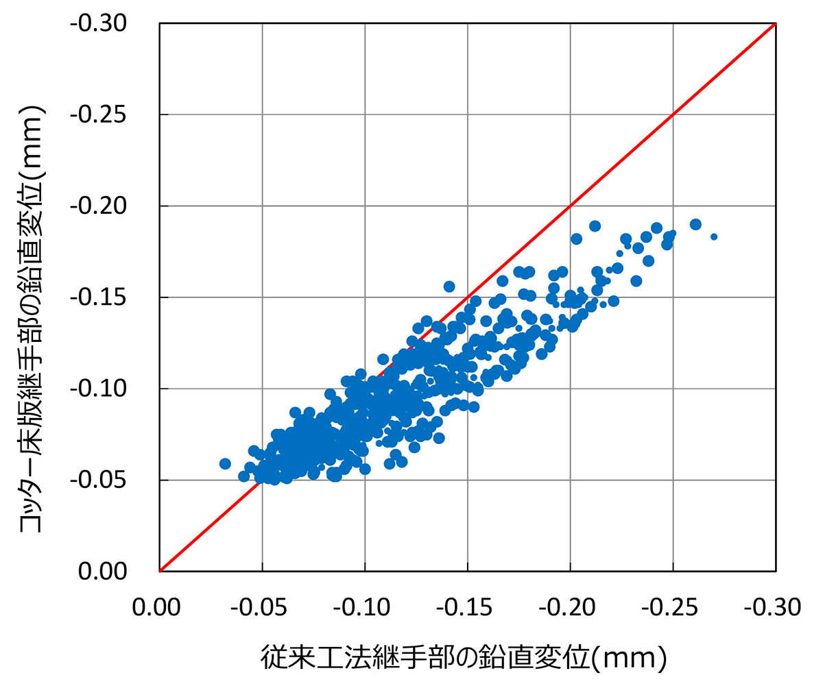 現場打設が不要で鉄筋組立や型枠組立などの工程も省けるため、従来工法のループ継手と比較して床版架設から接合までの作業日数を約50%短縮、施工人員を約60%低減することを実現した。