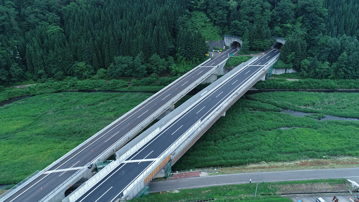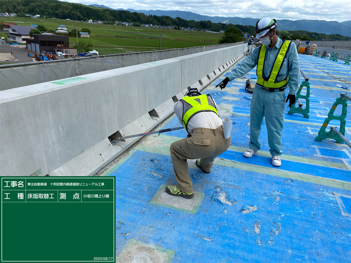 「十和田管内高速道路リニューアル工事」の元請は、熊谷組・ショーボンド建設JVで、熊谷組が床版取替工事、ショーボンド建設がトンネル補修を施工している。