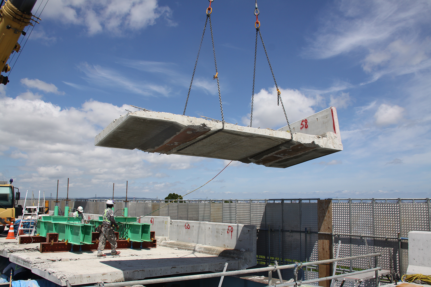 追越車線規制期間も撤去 壁高欄一体で撤去および架設