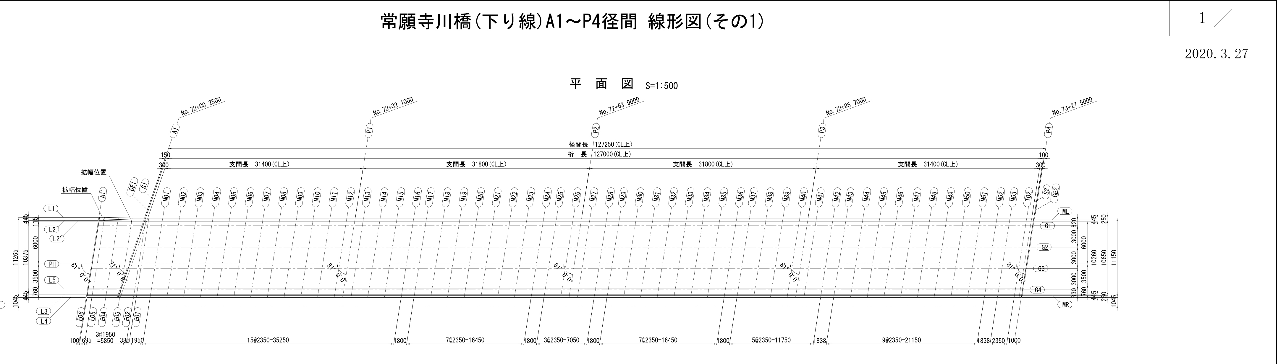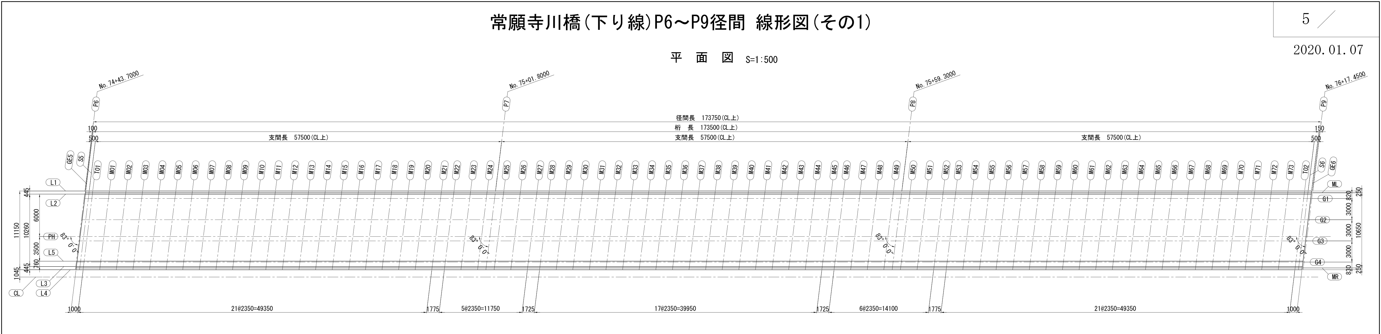 常願寺川橋A1~P9(平面図)(NEXCO中日本提供、以下注釈なきは同)