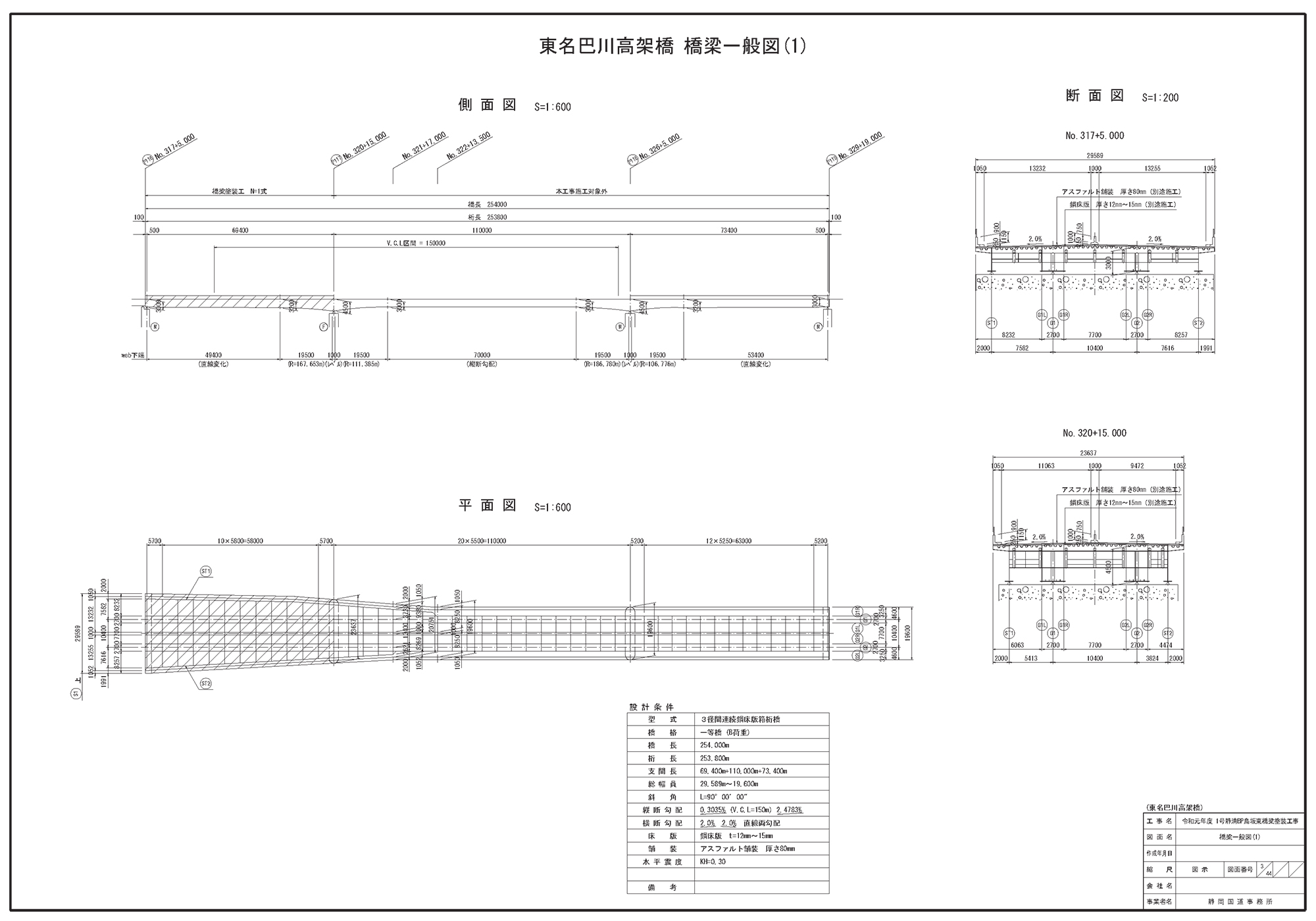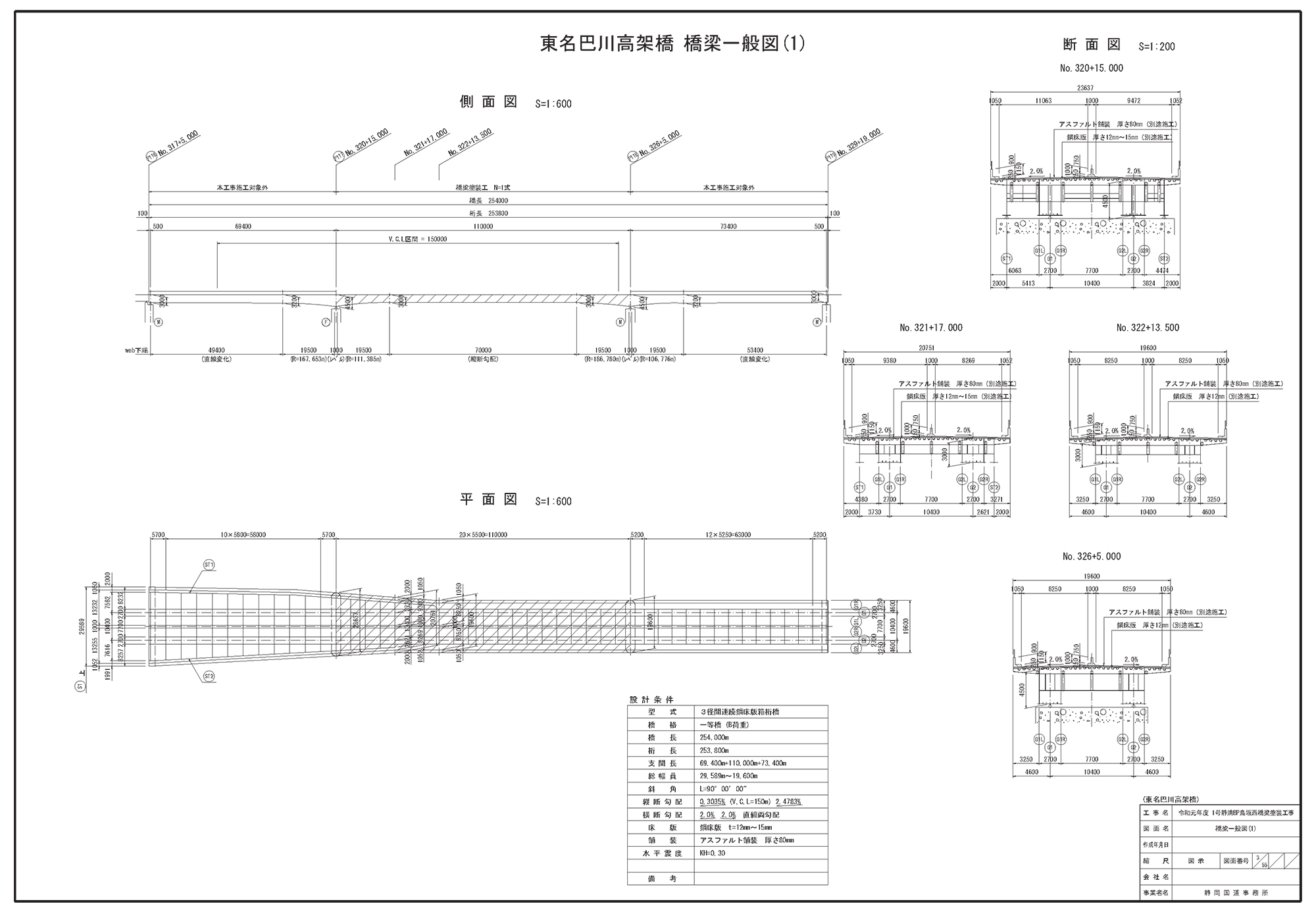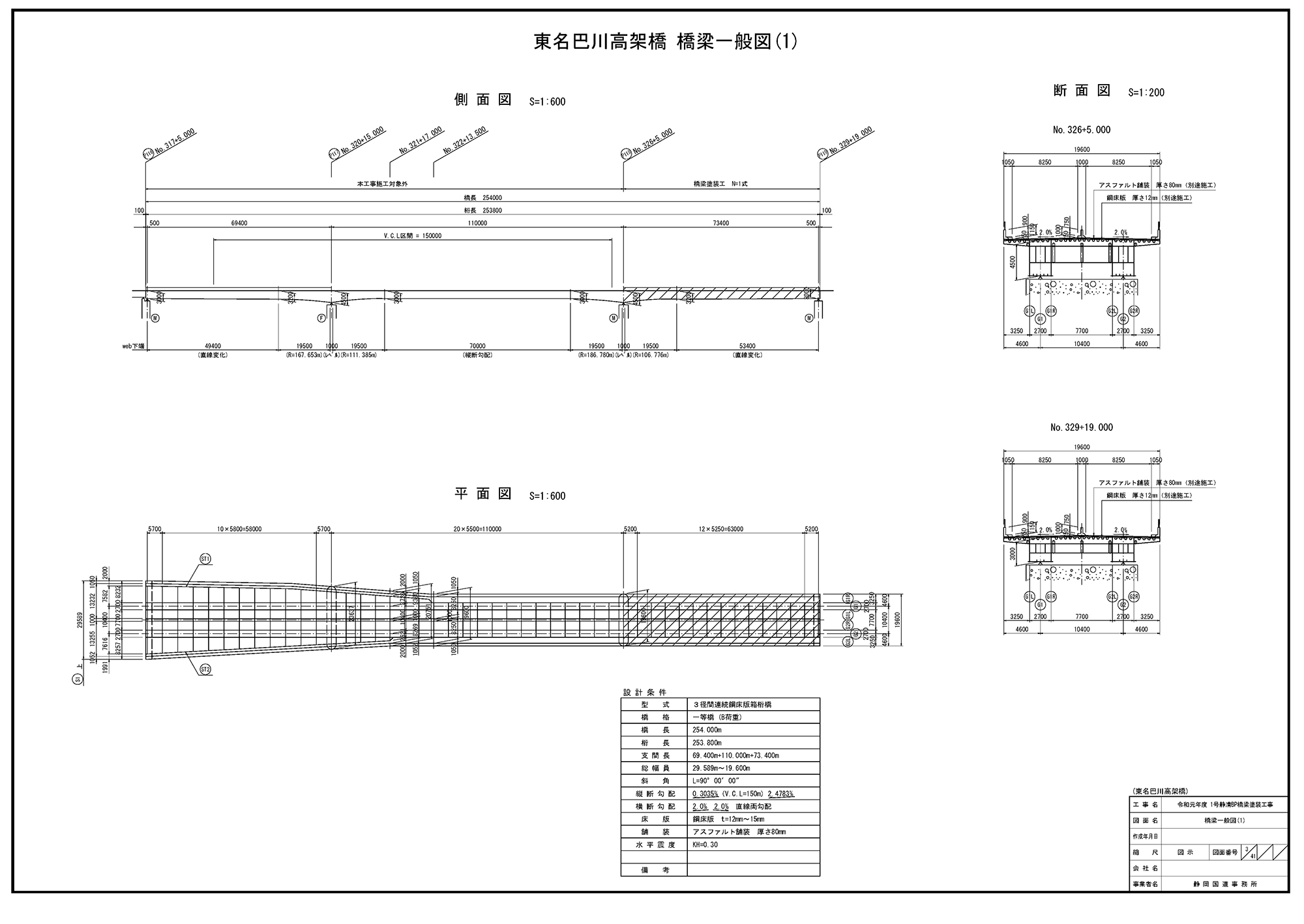 東名巴川高架橋の平面図(静岡国道事務所提供)