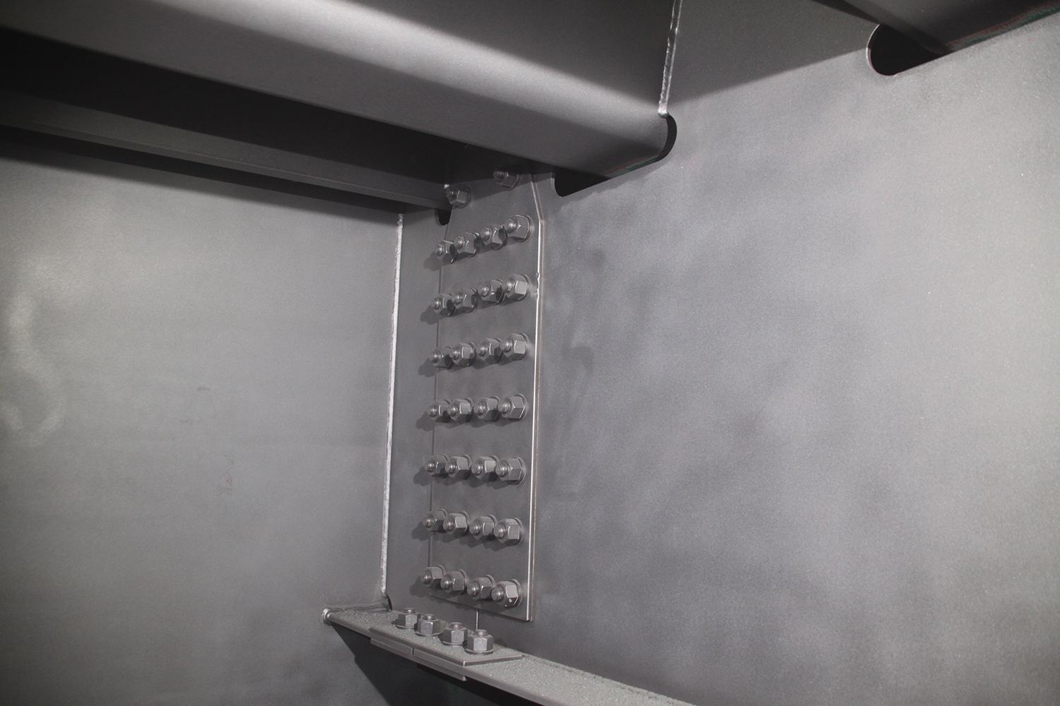 10週程度かけてミストコートまで施工した後、目粗しを施して6週間程度かけて弱溶剤系重防食(フッ素樹脂トップコート)による塗替え塗装を施していった。