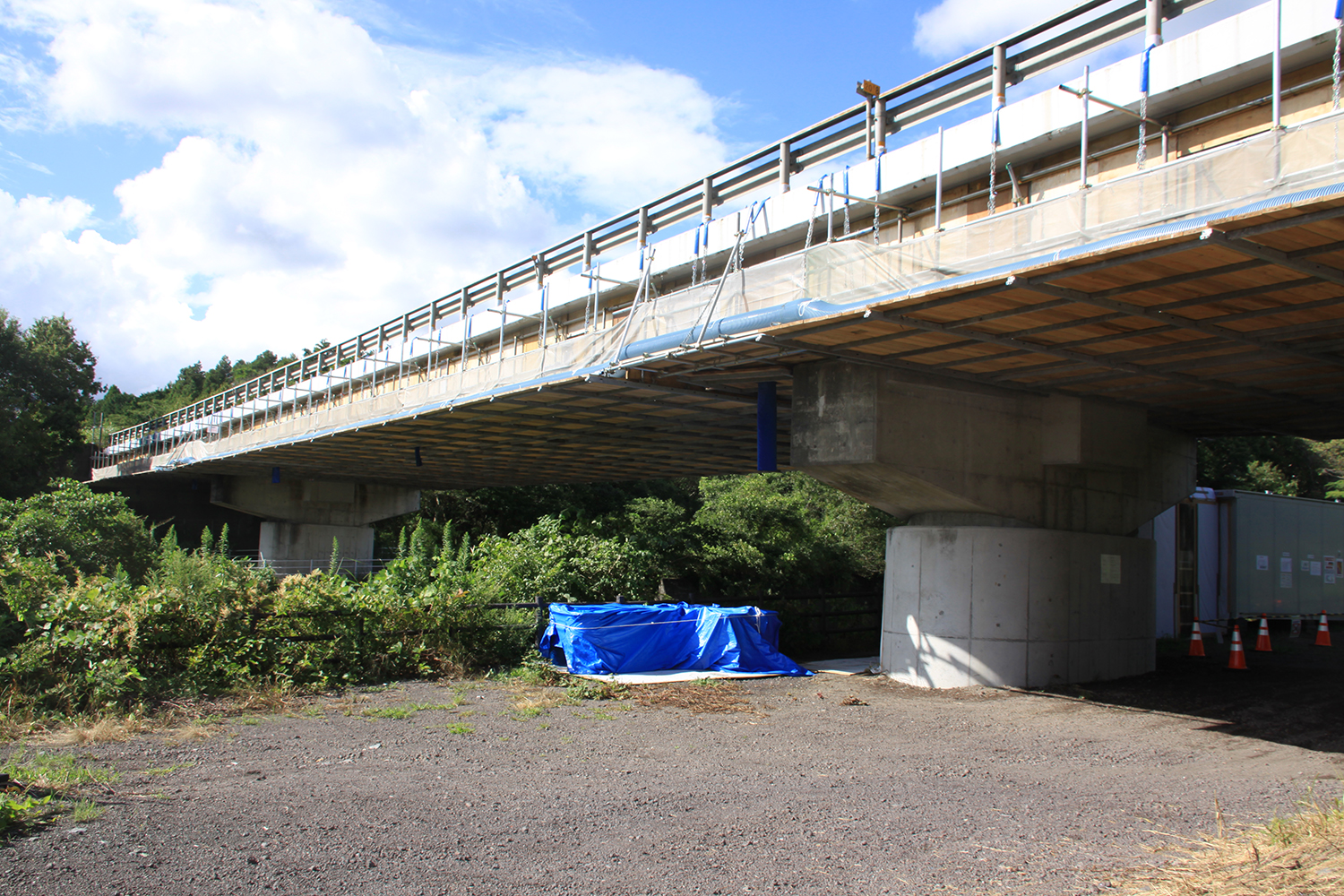東名巴川高架橋と大沢大橋 塗膜剥離剤と循環式ブラスト採用