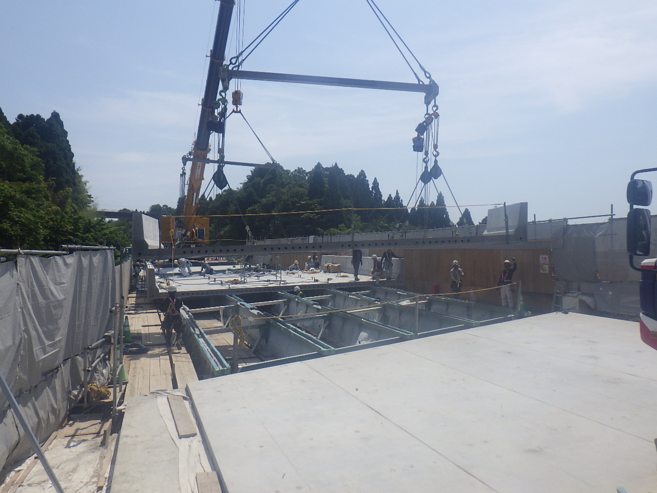 神谷川橋の床版架設①