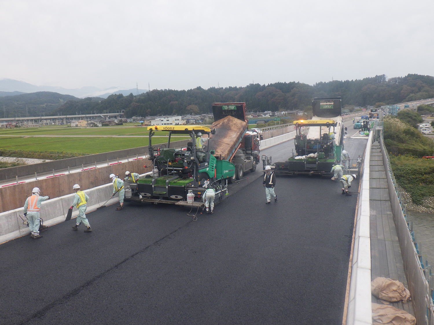 床版防水は、両橋共に高性能床版防水工法(ノバレタンES工法)を採用している。防水面積は布施川橋が630㎡、神谷川橋が450㎡、舗装は高性能舗装を採用しており、布施川橋が665㎡、神谷川橋が475㎡となっている。
