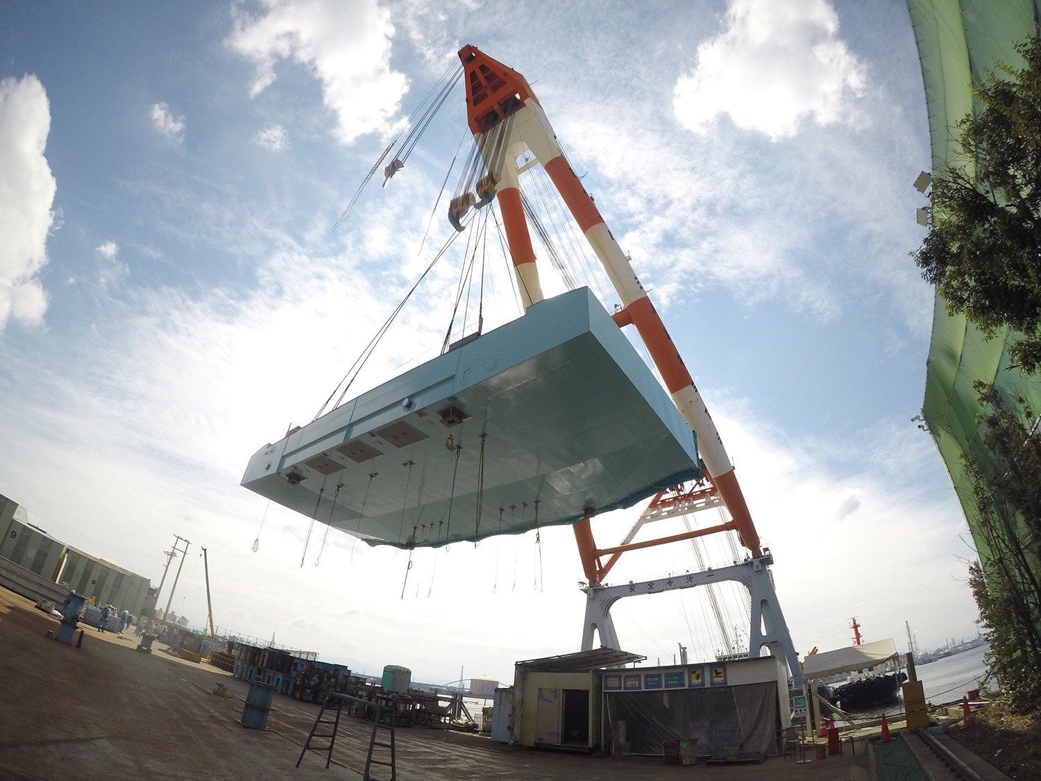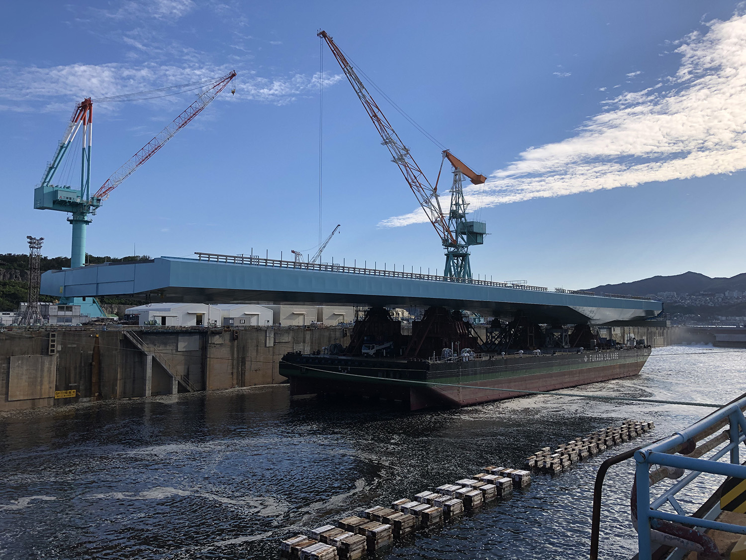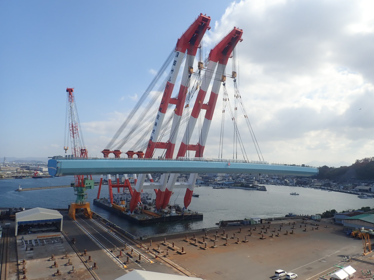 全長を4ブロックに分けてFC船を用いて架設する予定で、昨年11月下旬までに3回目までのブロックの架設を完了し、最終架設も12月5日に完了した。