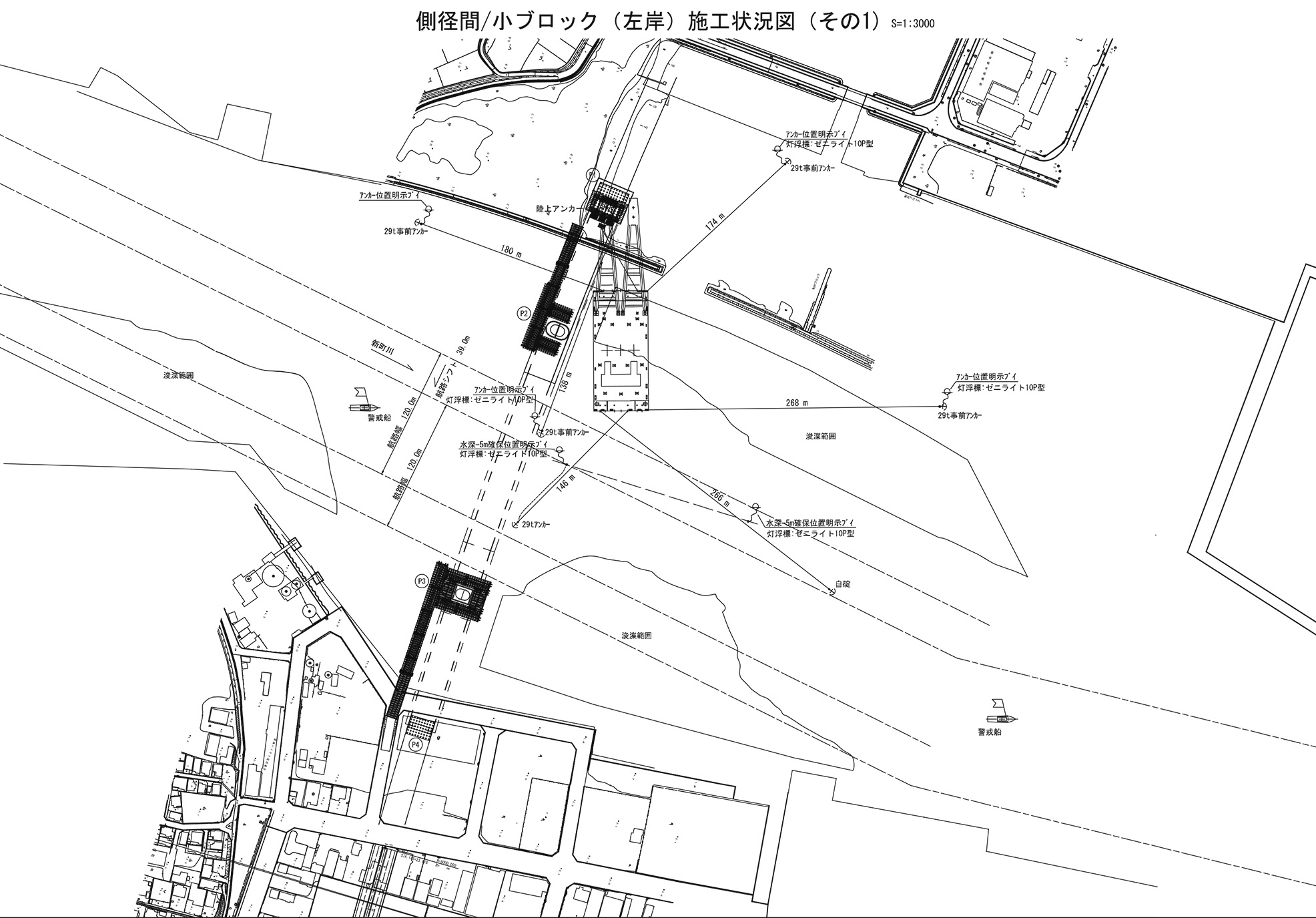 左岸側小ブロックの架設状況図(拡大して見て下さい)