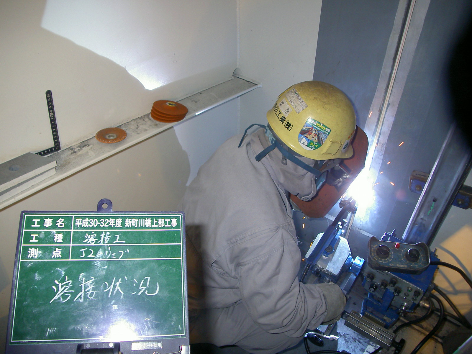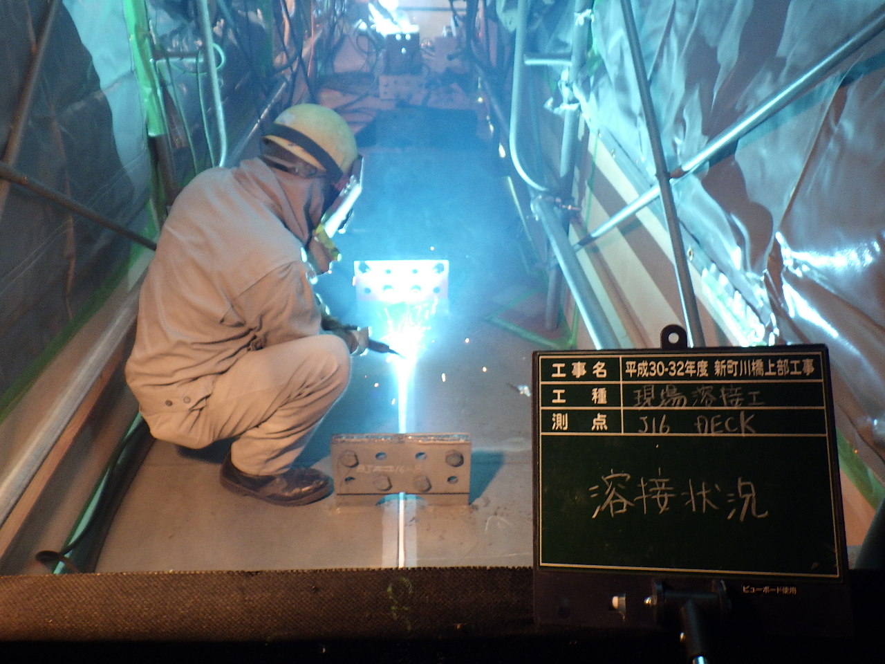 その上で、両側の溶接を行っていくが、これも地組時に溶接要領の検討を行い、その結果および実績を反映して、現場溶接を行った。