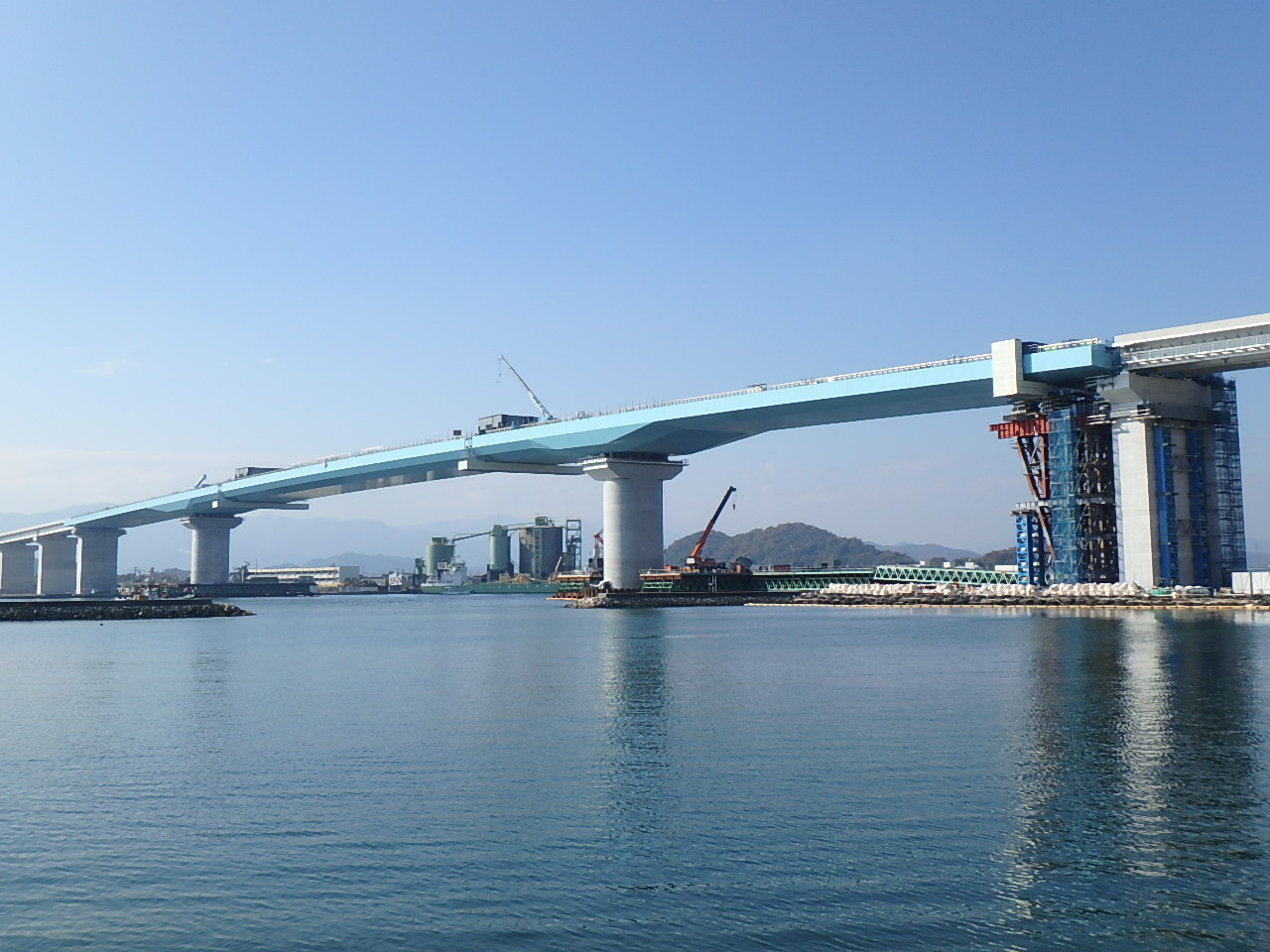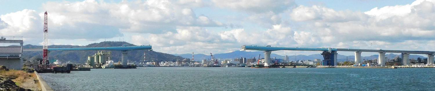 徳島河川国道新町川橋上部工 橋長500m、鋼重は約9000tに達する長大橋