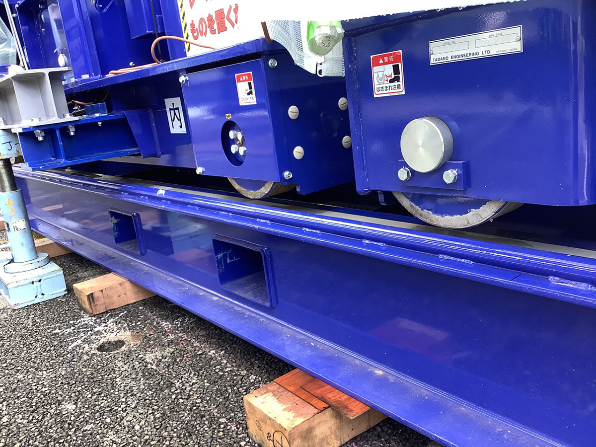 1日あたりの撤去・架設枚数はそれぞれ3枚で、作業が完了したら桁上に設置したレールで床版架設機を次のサイクルに備えて移動させている。レールは床版割付に合わせて長さ4.8m、2.4mと調整用の1.2mのもの、3種類を用意して、1サイクル(1日の作業分)となる7.2m(4.8m+2.4m)を敷設。移動時にはレールの継ぎ足しを行い、不要となったものは撤去した。