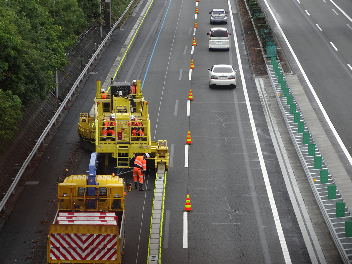 規制区間の防護柵設置ではロードジッパーシステムを活用