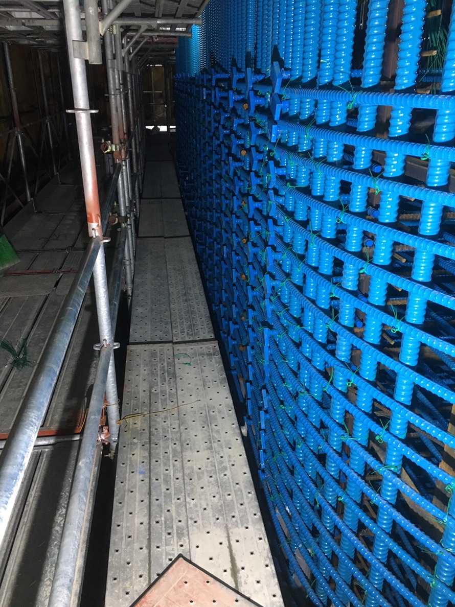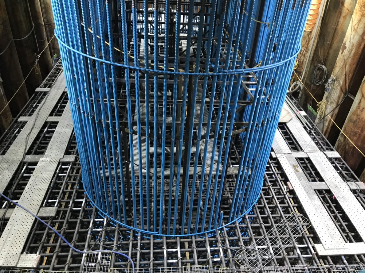 防食対策 純かぶり90mm、エポキシ樹脂塗装鉄筋を採用