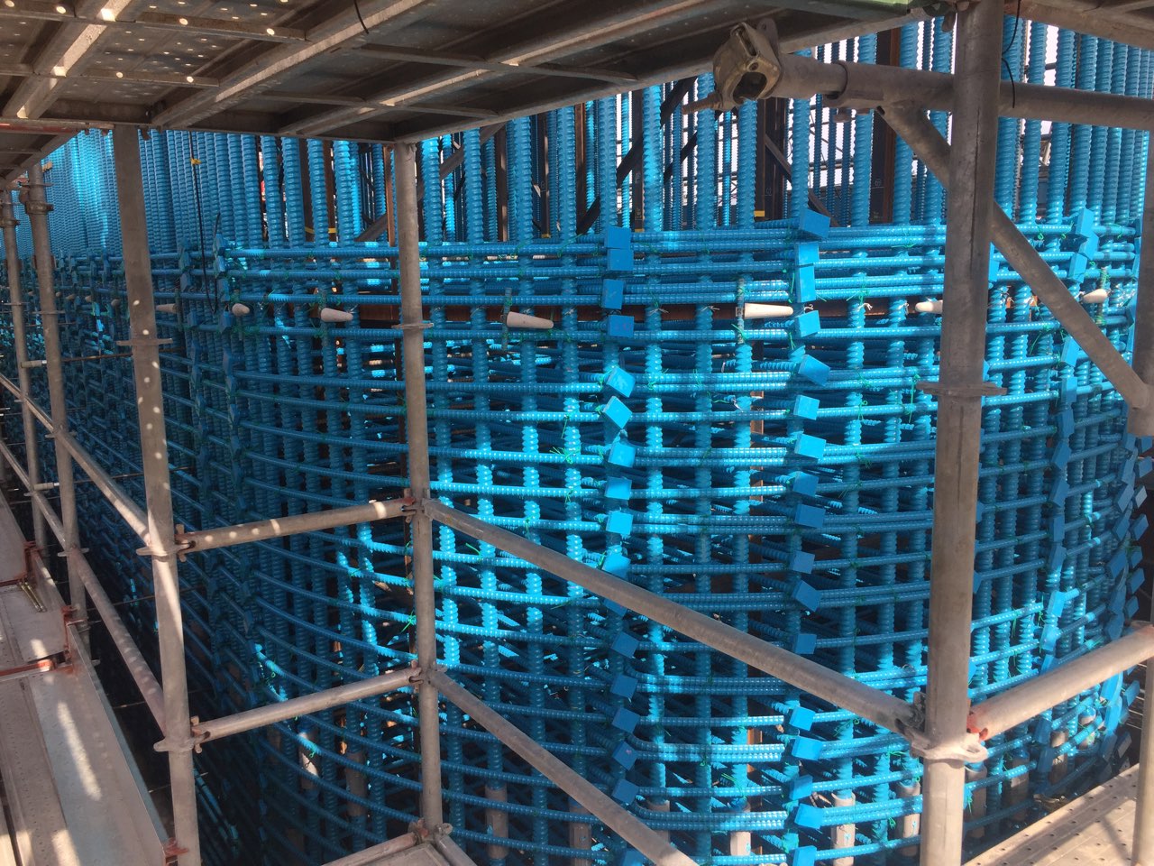 鉄筋の鉛直精度は20mで10~15mm程度の誤差内に収める