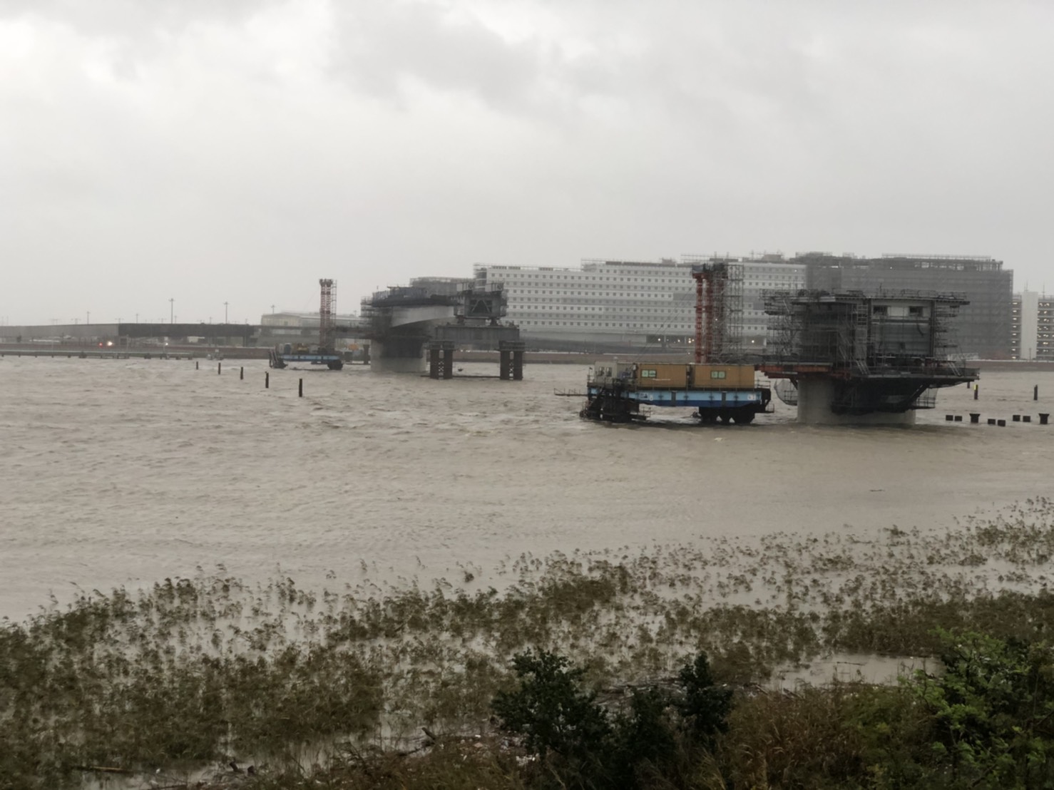 2019年10月に日本を襲った台風19号は多摩川流域にもその大きな爪痕を残したが、本橋も例外ではなかった。台船などが使う航路及び築造部に13万㎥におよぶ土砂が堆積し、文字通り「工事開始時に浚渫する前の状態に戻ってしまった」。そのため-2.5kmの区間の浚渫をやり直すことになった。川崎市の対応は早かった。すぐに同年12月の市議会で浚渫に要する費用を予算化した。その総額は約30億円にも上った。