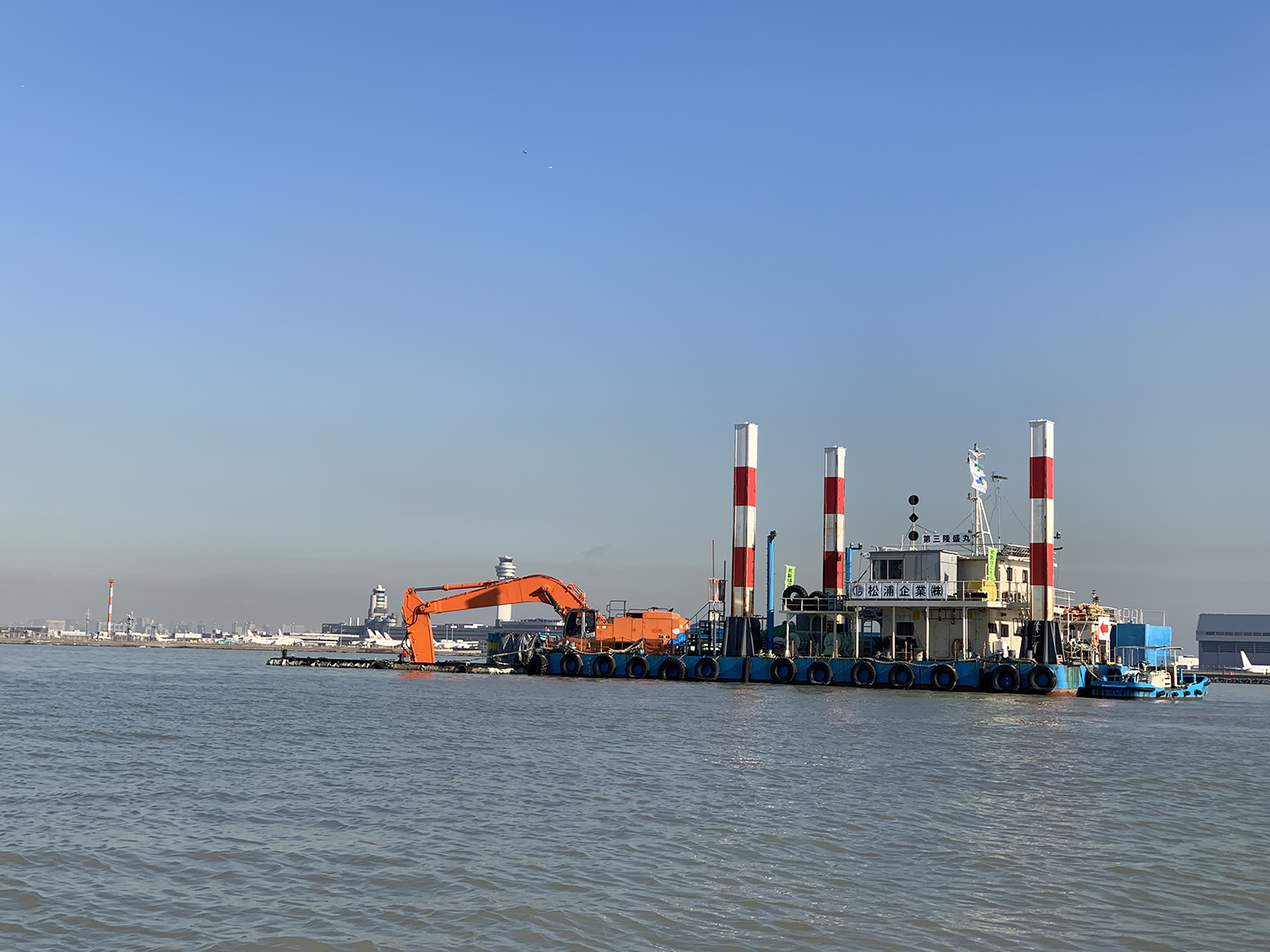 浚渫のやり直しは11月から着手した。水深が浅いため、グラブ式よりもバックホウ船が適しているが、当時は工事が錯綜しており、東京湾内には数隻しかおらず、その船も同じ被害を受けた首都高速大師橋架替えのための浚渫にも利用されていた。