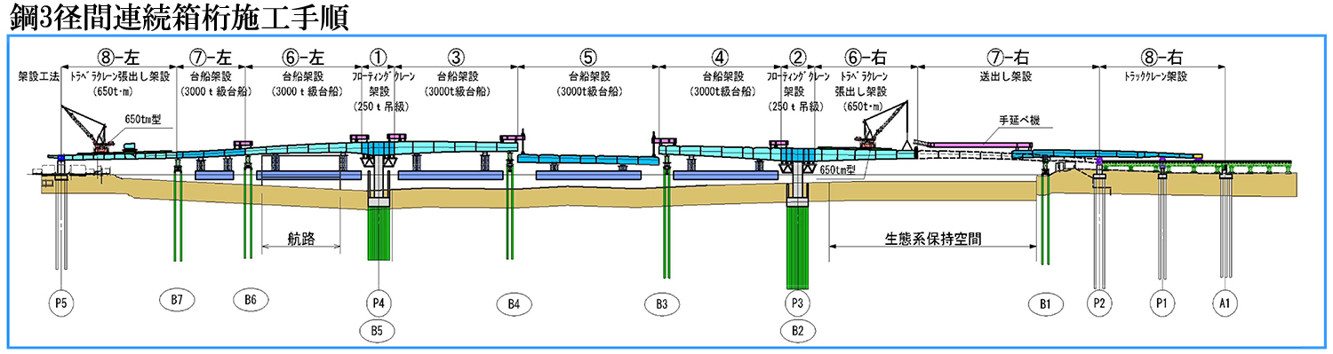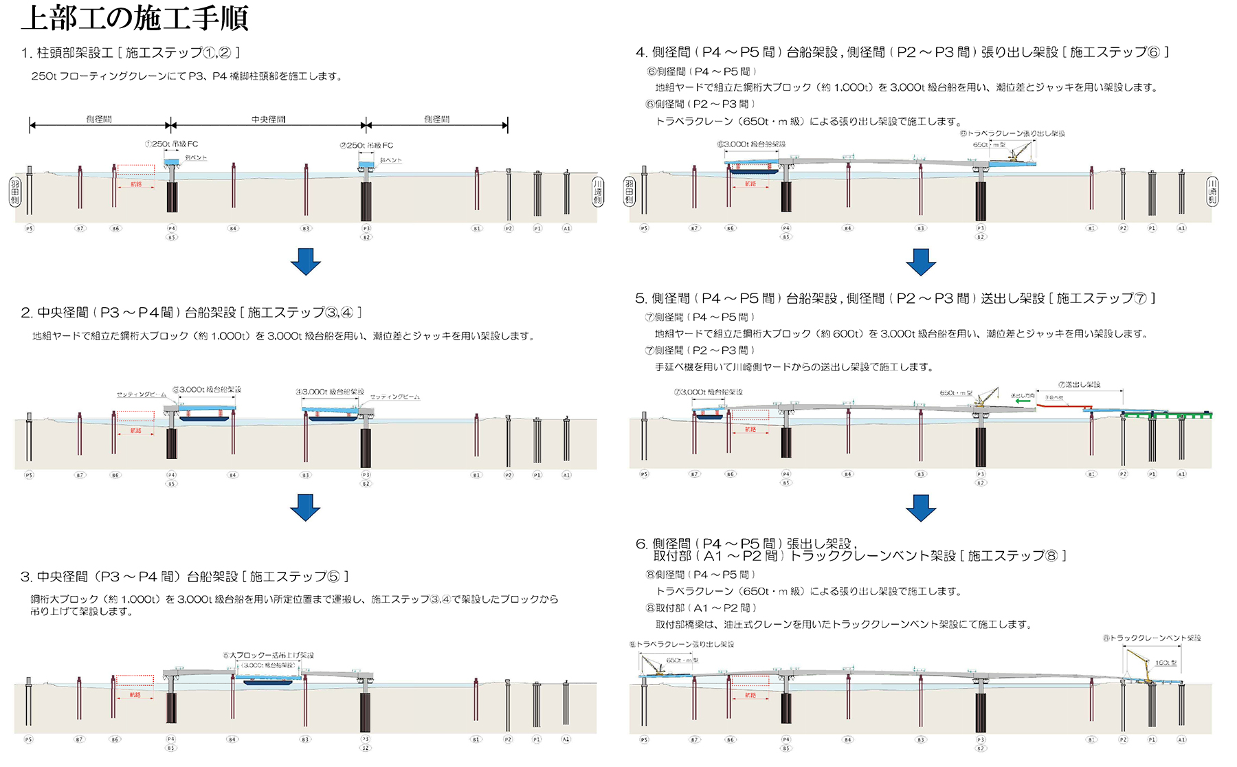 上部工架設工法は台船、張出し、送り出しなど多岐にわたる