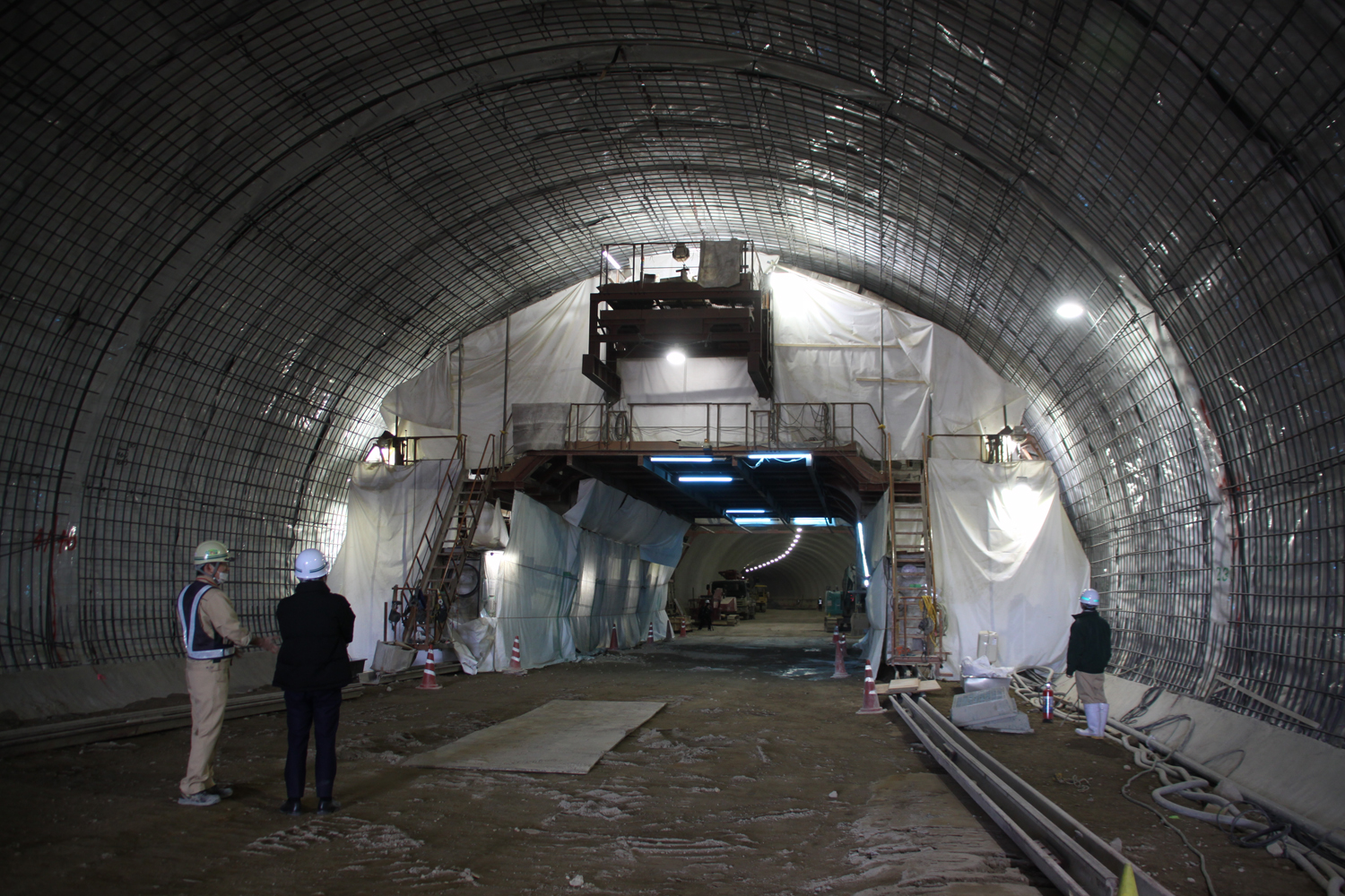 本現場では取り組めなかったものの、コンクリートの打設においてはさらなる効率化を目指している。というのも「南湖トンネルのような有筋トンネルは稀で、無筋トンネルではさらなる効率向上を図ることができる。将来的には高流動にしてノンバイブか、中流動でも型枠バイブのみで締固めが可能にできるよう改良を進めて行く」(同)としている。