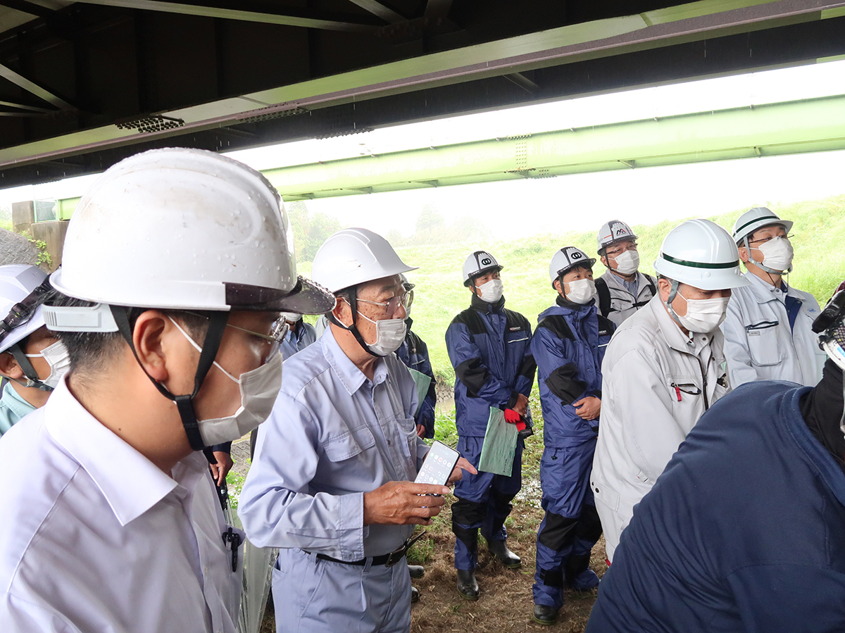 圧力調整注入技術研究会(佐々木孝彦会長・栄組)と栄組は5月19日、千葉県睦沢町が所管する森長橋(橋長30m、1978年建設)で、圧力調整注入工法「SAPIS(サピス)」によるコンクリートひび割れ補修の現場見学会を開催した。当日は、近隣自治体の職員、施工業者など約35人が参加した。