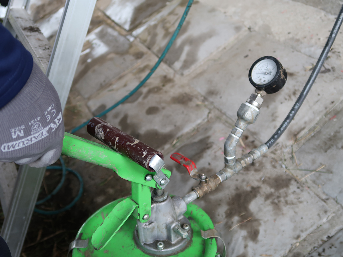 注入圧力は作業員が注入圧力計を確認しながら管理する