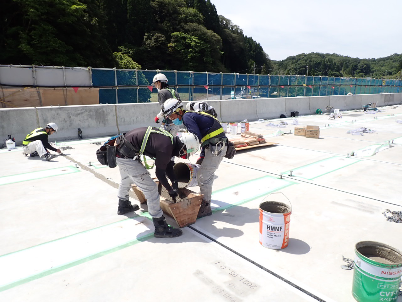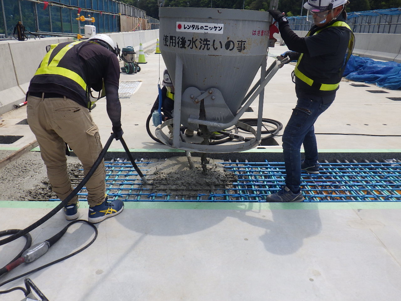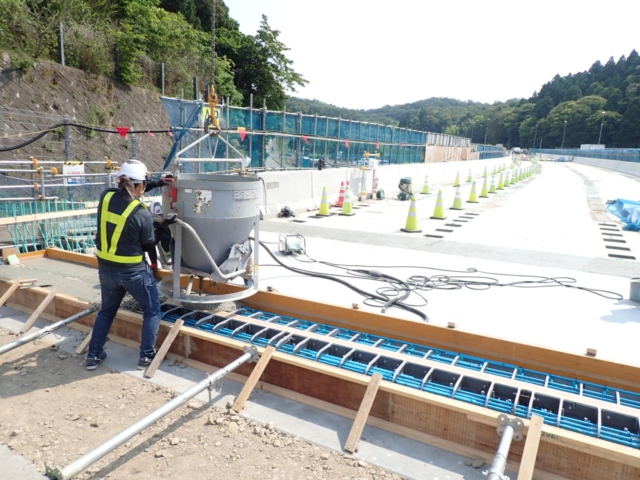 目地モルタルの打設(「Denka スプリードGV TYPE-P」を採用した)