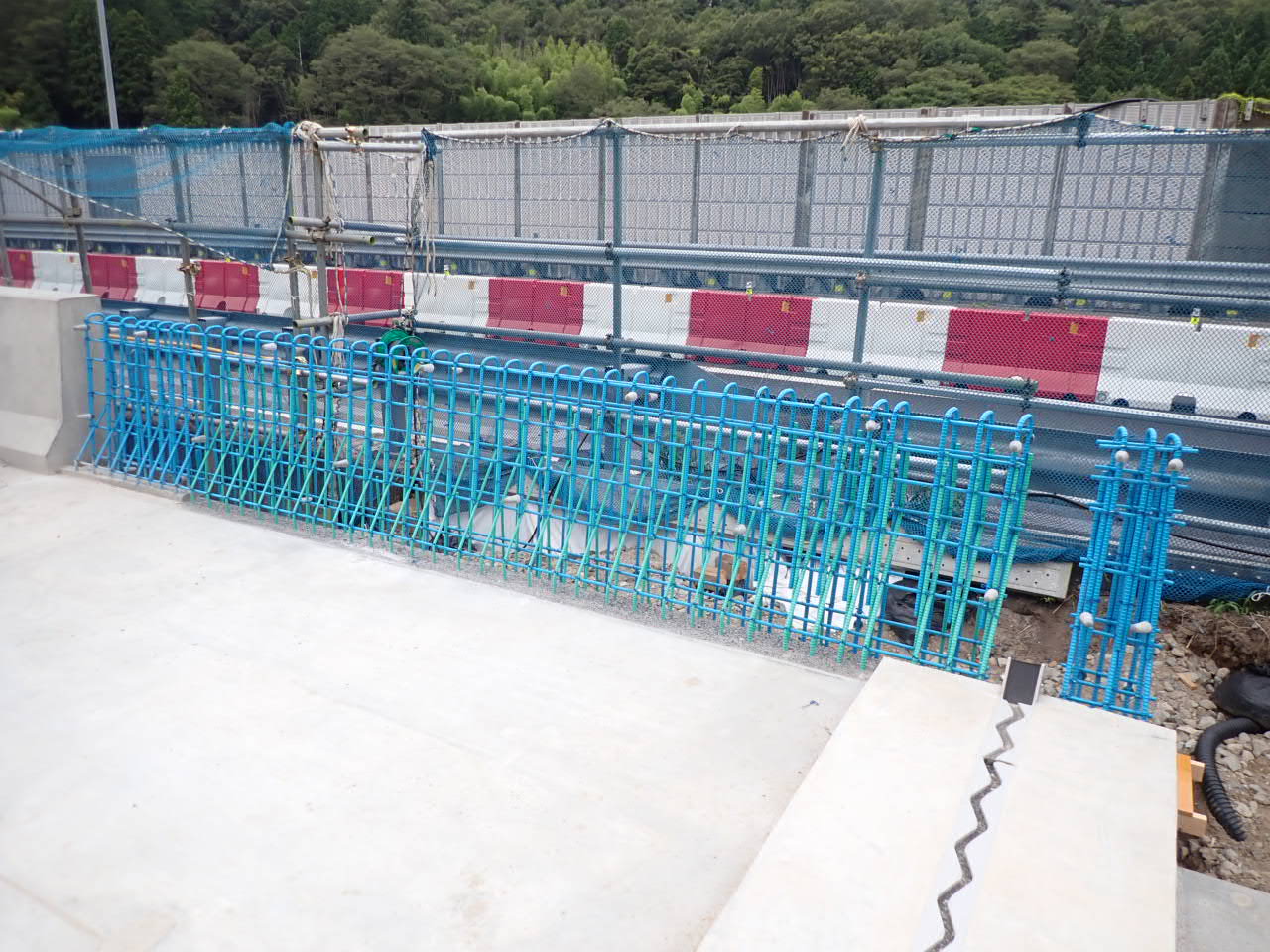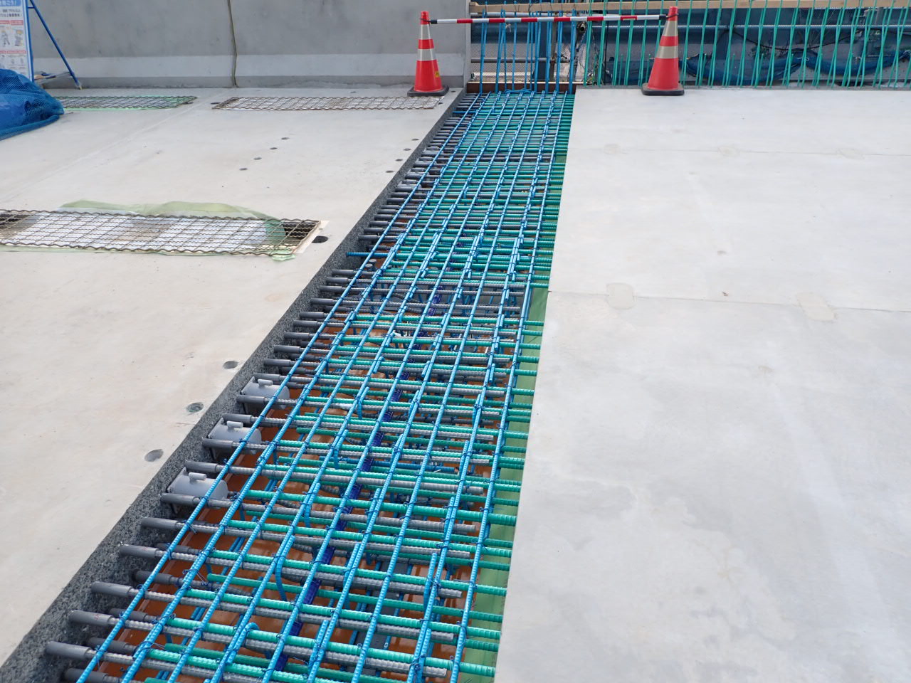 プレキャストPC床版に用いる鉄筋は全て安治川鉄工製のエポキシ樹脂塗装鉄筋、PCケーブルは全て被覆タイプを使用し、防食性能の向上に努めている。