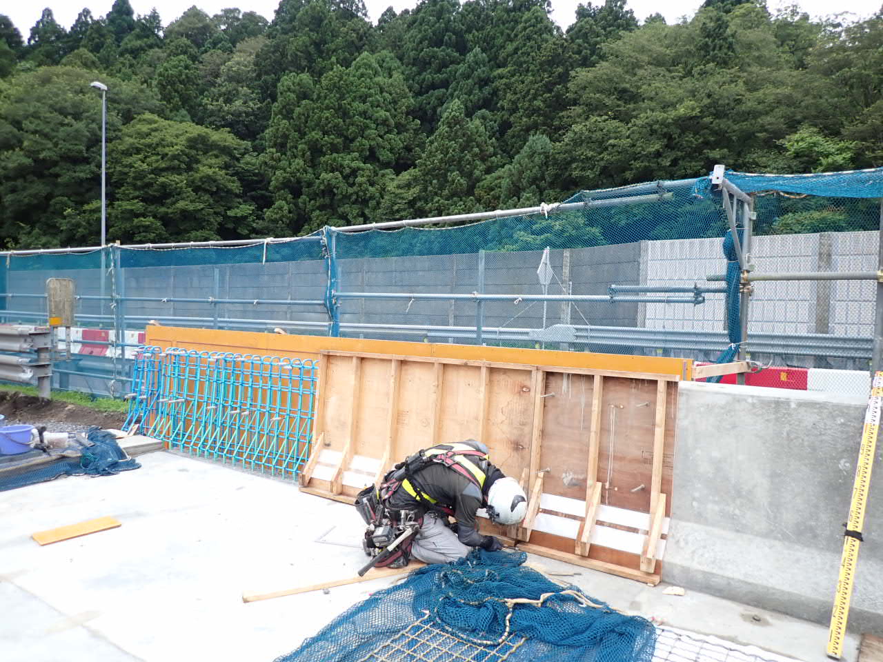 作業用足場はタカミヤのスパイダーパネルを採用した。現場は桁下クリアランスが最低で2.5mと低いが、足場の設置はスムースに行えたようだ。