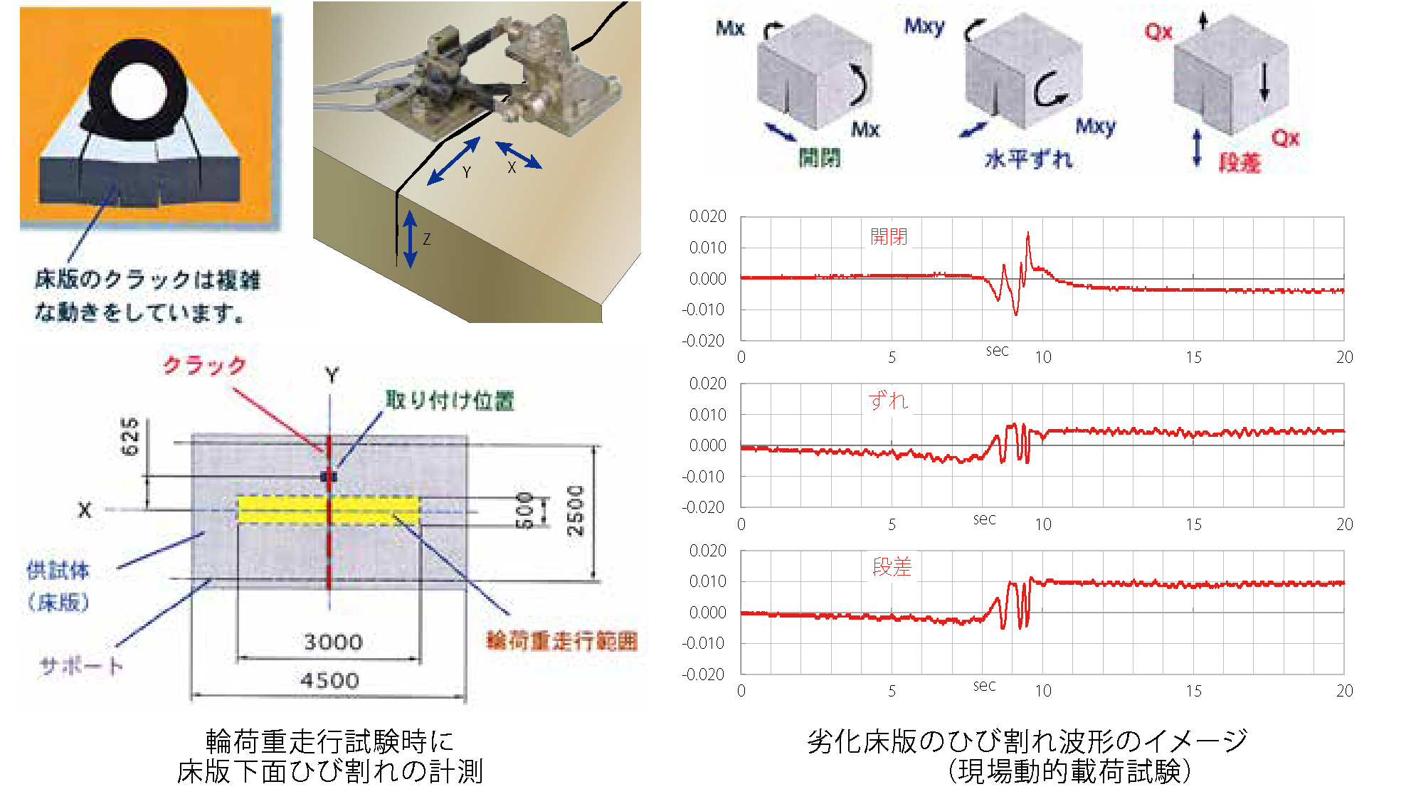 こうした計測を実床版で確認し、劣化の進展レベルを確認することができれば、既設床版の補修・補強の時期推定と適切な工法選択を行うことが可能となる。