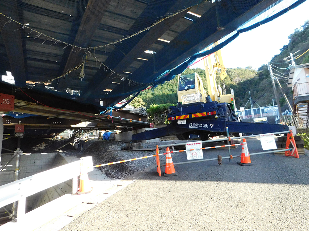 交差道路上には、はく落防止対策として、「テクノーラSAMMシート」を敷設(後述)(写真=*)