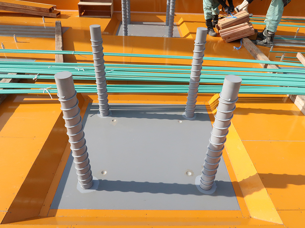 塩害対策区域のG1とG5では鉄筋すべてにエポキシ樹脂塗装鉄筋を採用